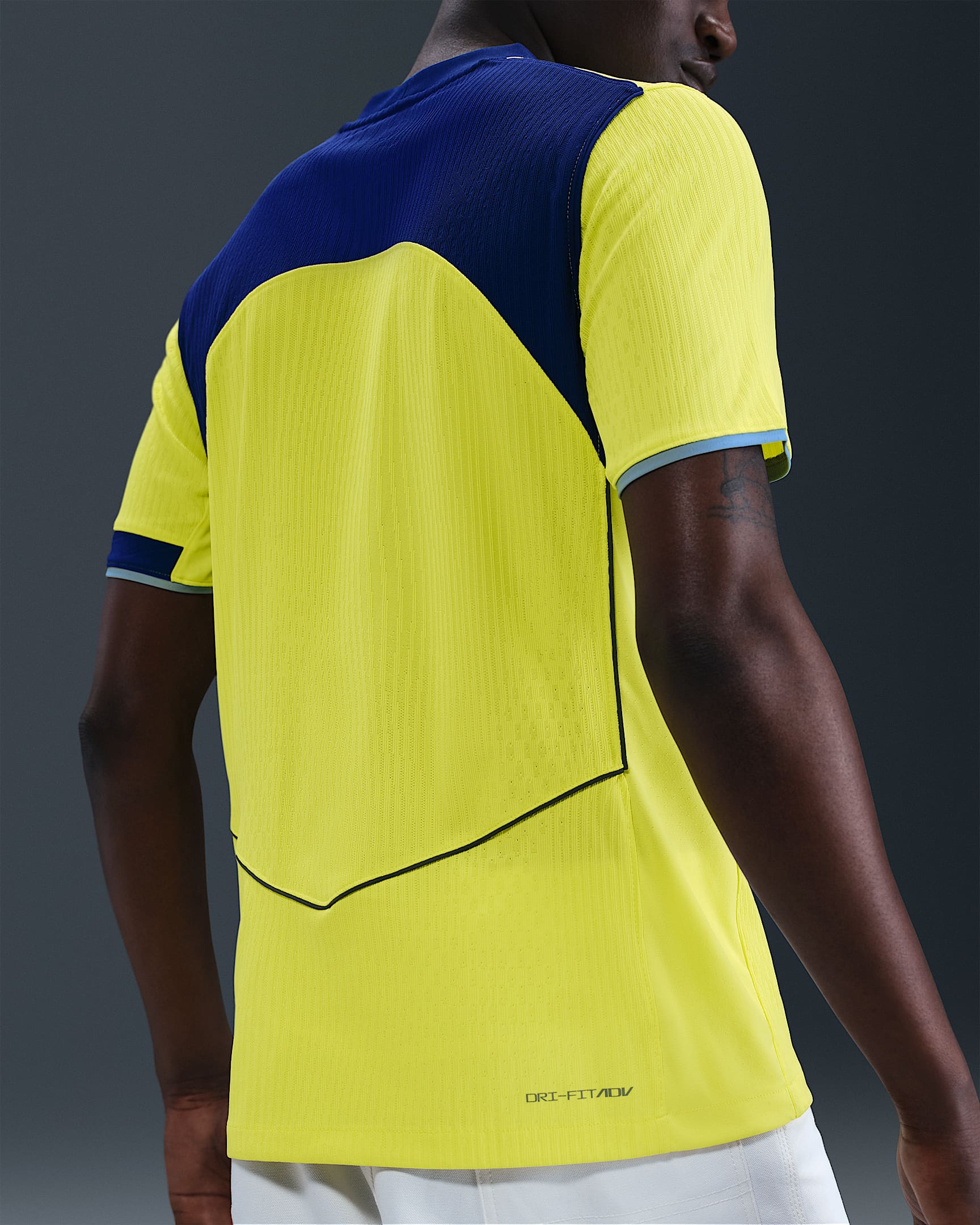 The jersey is produced using Nike’s Dri-FIT ADV technology for moisture control and player comfort, and is paired with yellow shorts and socks to complete the full match set.