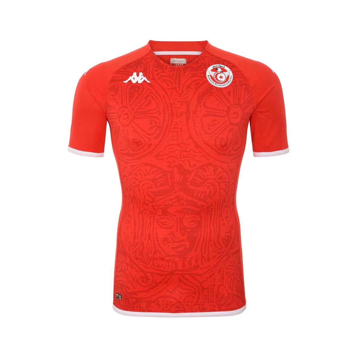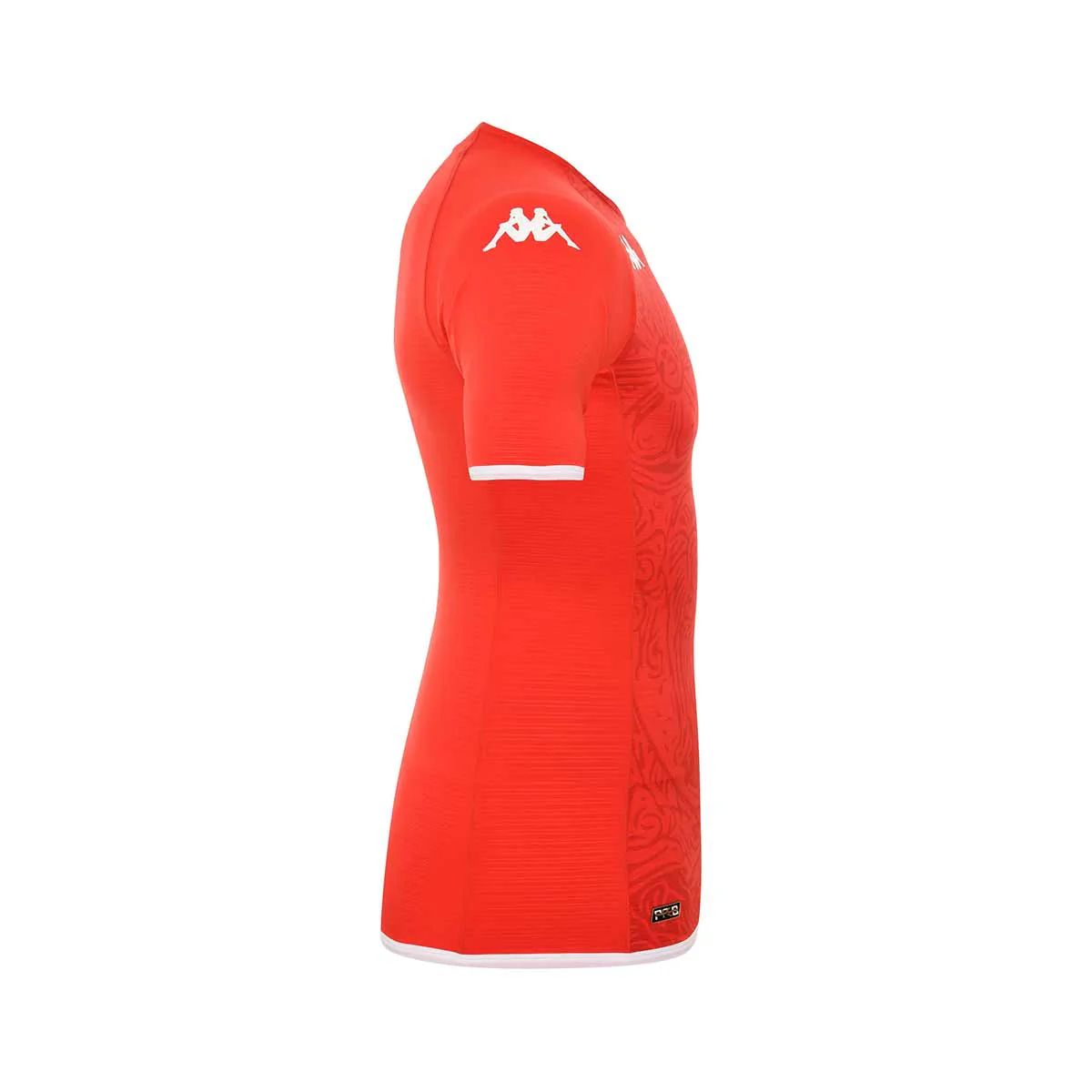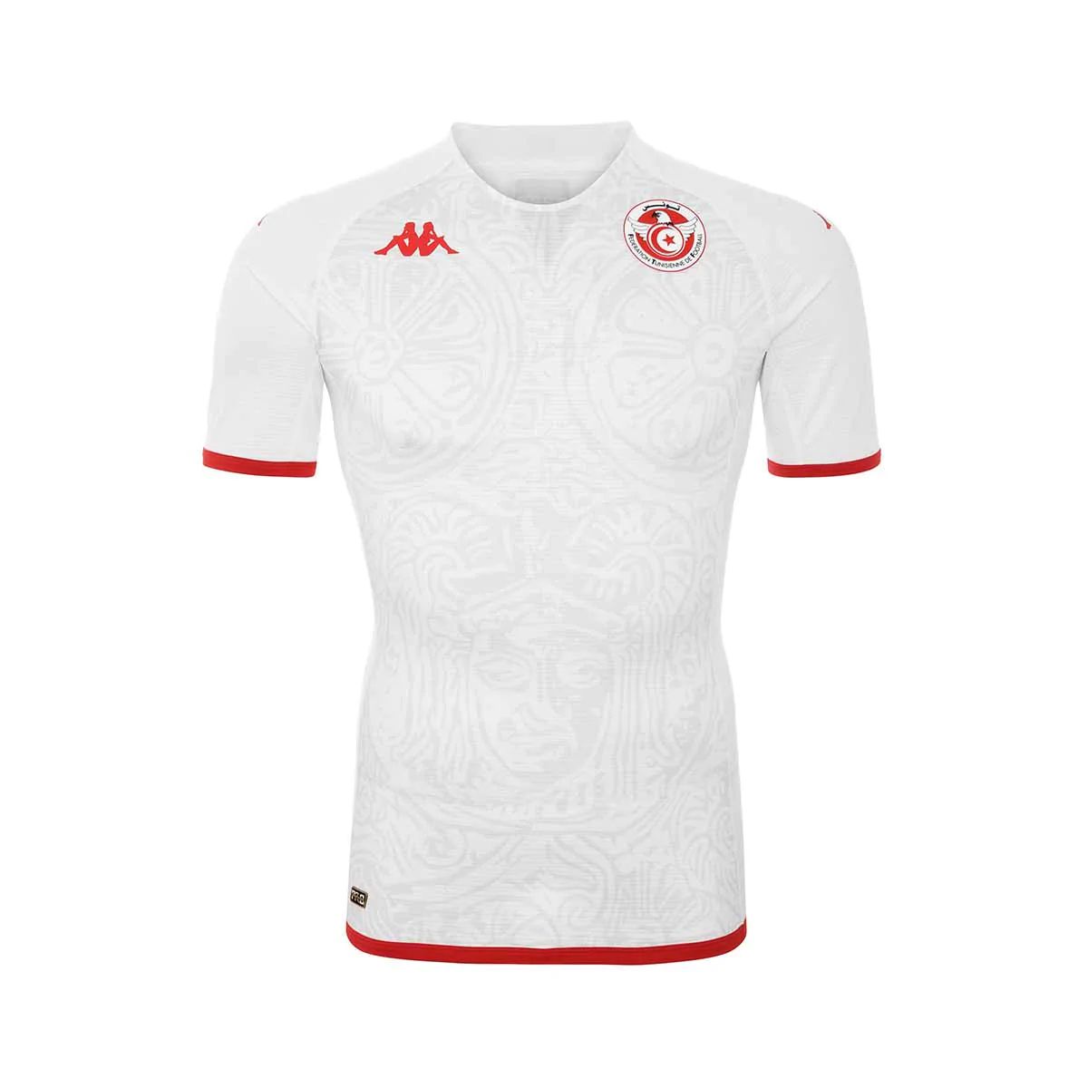 The two 2022-23 Kombat PRO releases from Kappa are in the same template, in red for the first choice and white for the change, both decorated with a pattern based on national icon Hannibal’s armour. The kits will be completed with red and white sets of shorts and socks.