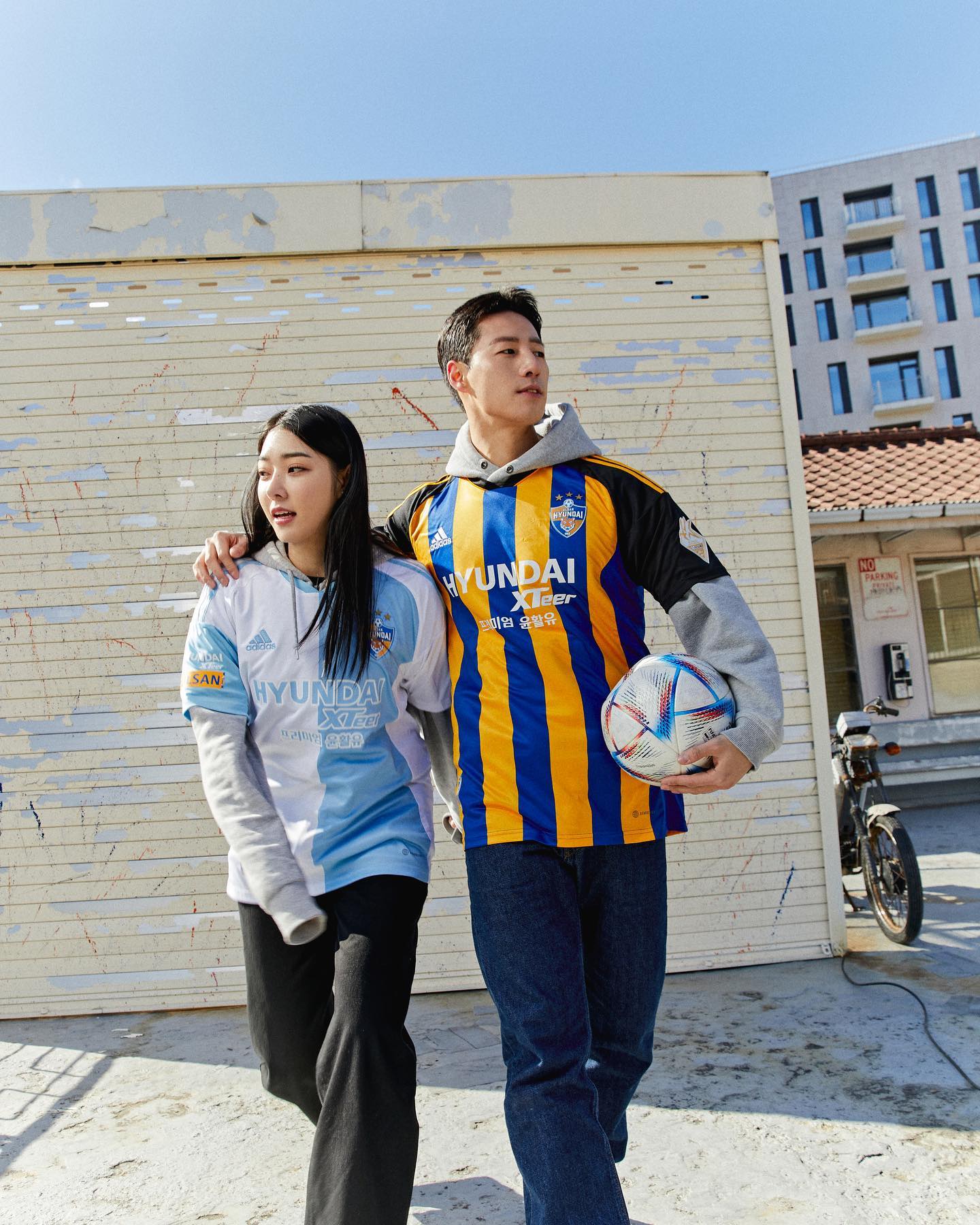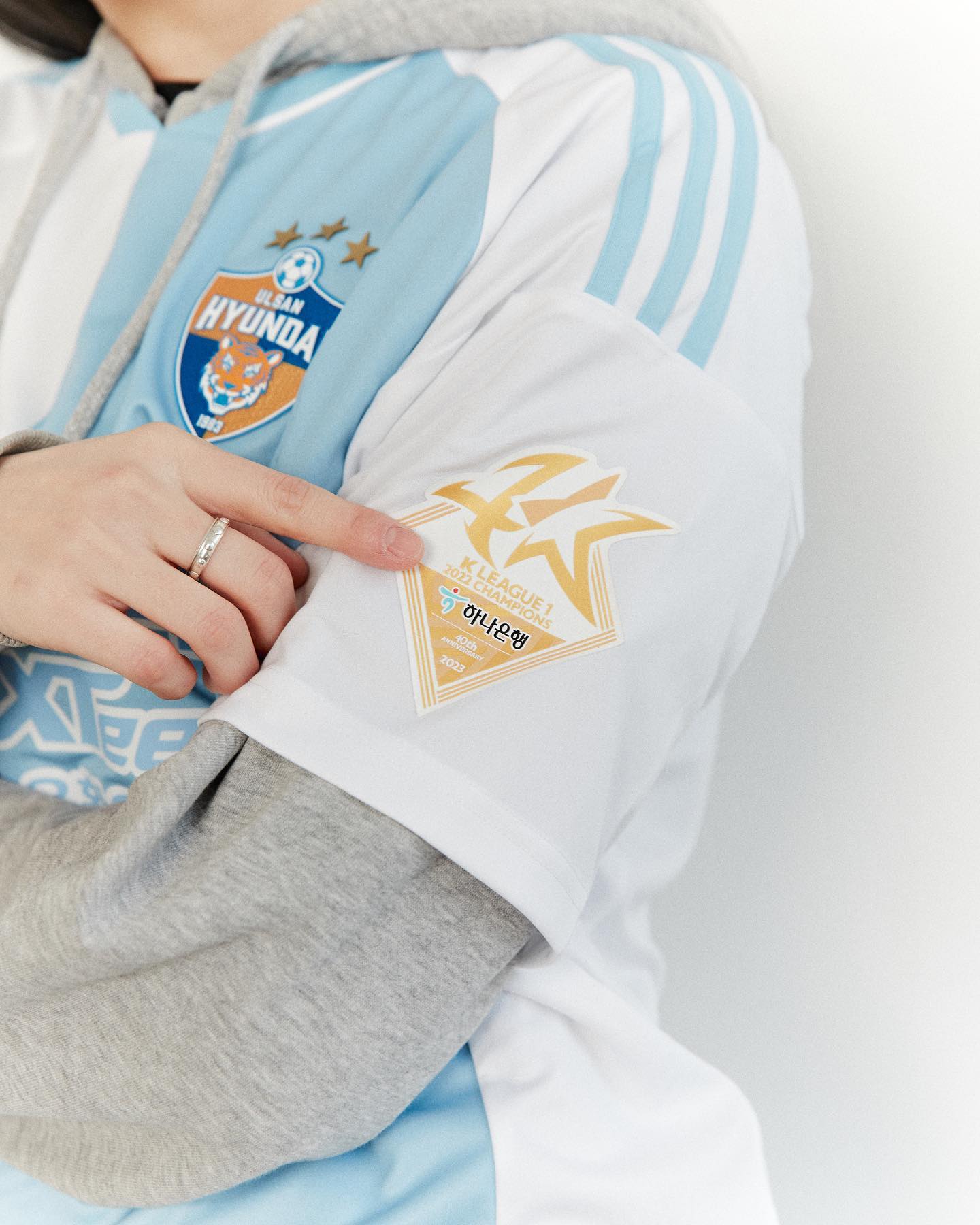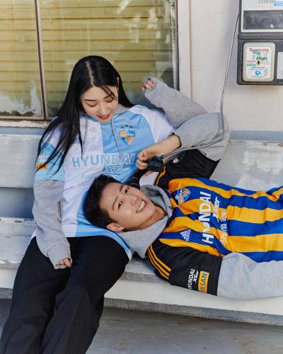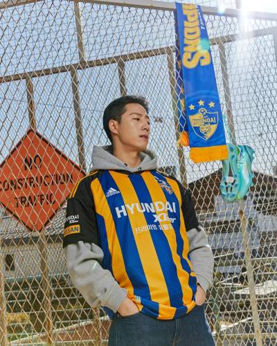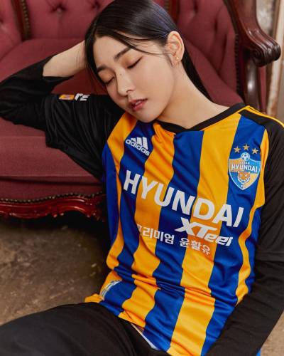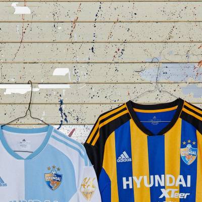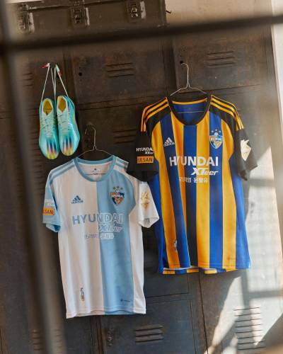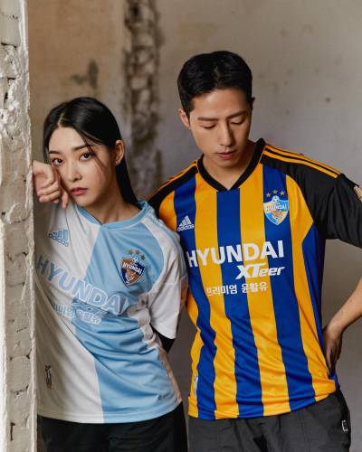 The new first-choice design for the South Korean K1 League champions, produced by adidas, features blue-and-yellow stripes to the trunk, while the change boasts sky-blue-and-white halves.
