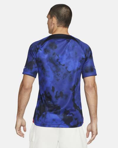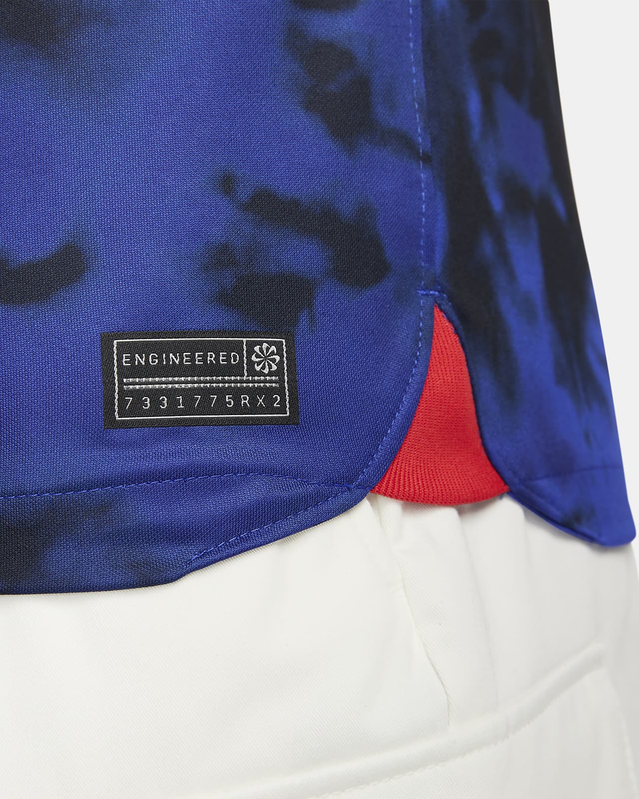In “Bright Blue” with tonal patterning, the USA’s 2022-23 change release from Nike sees the centrally placed and full-coloured crest act as the very obvious focal point.