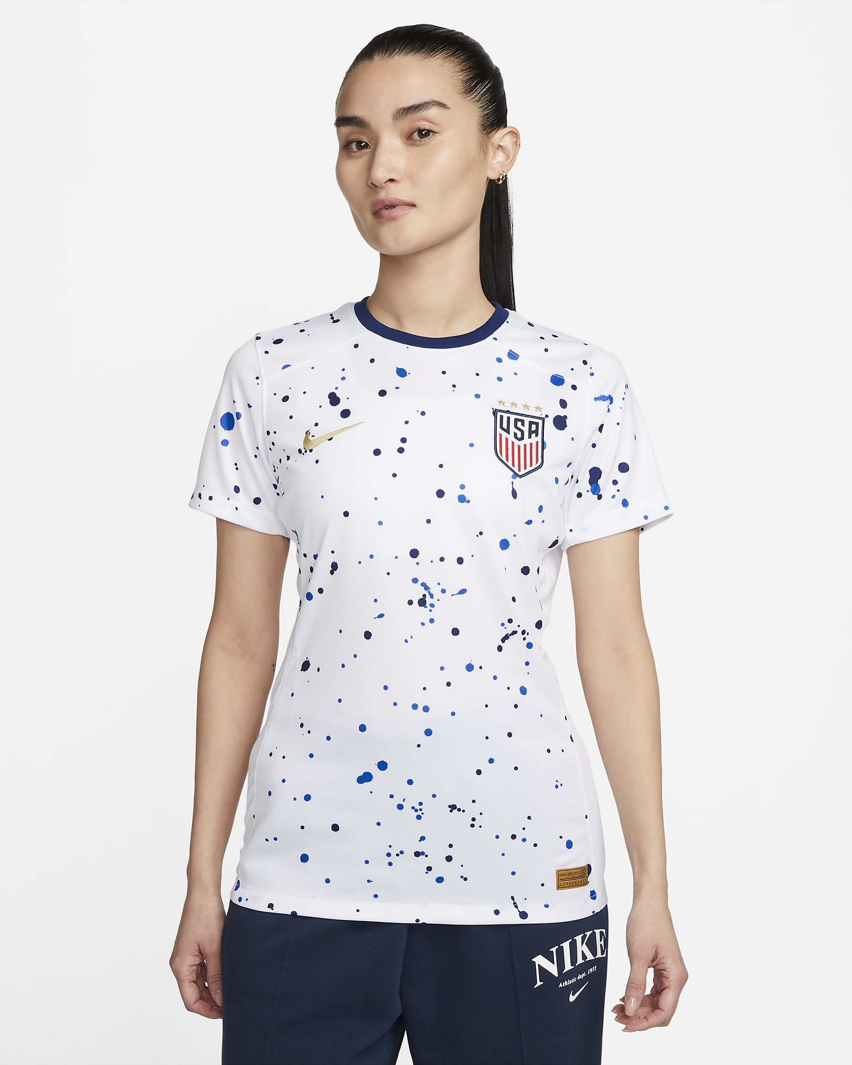 The United States 2023 Nike Women's Home Shirt draws inspiration from the abstract expressionism art movement that originated in New York City in the 1940s, coinciding with the rise of the US as a major player in women's football.