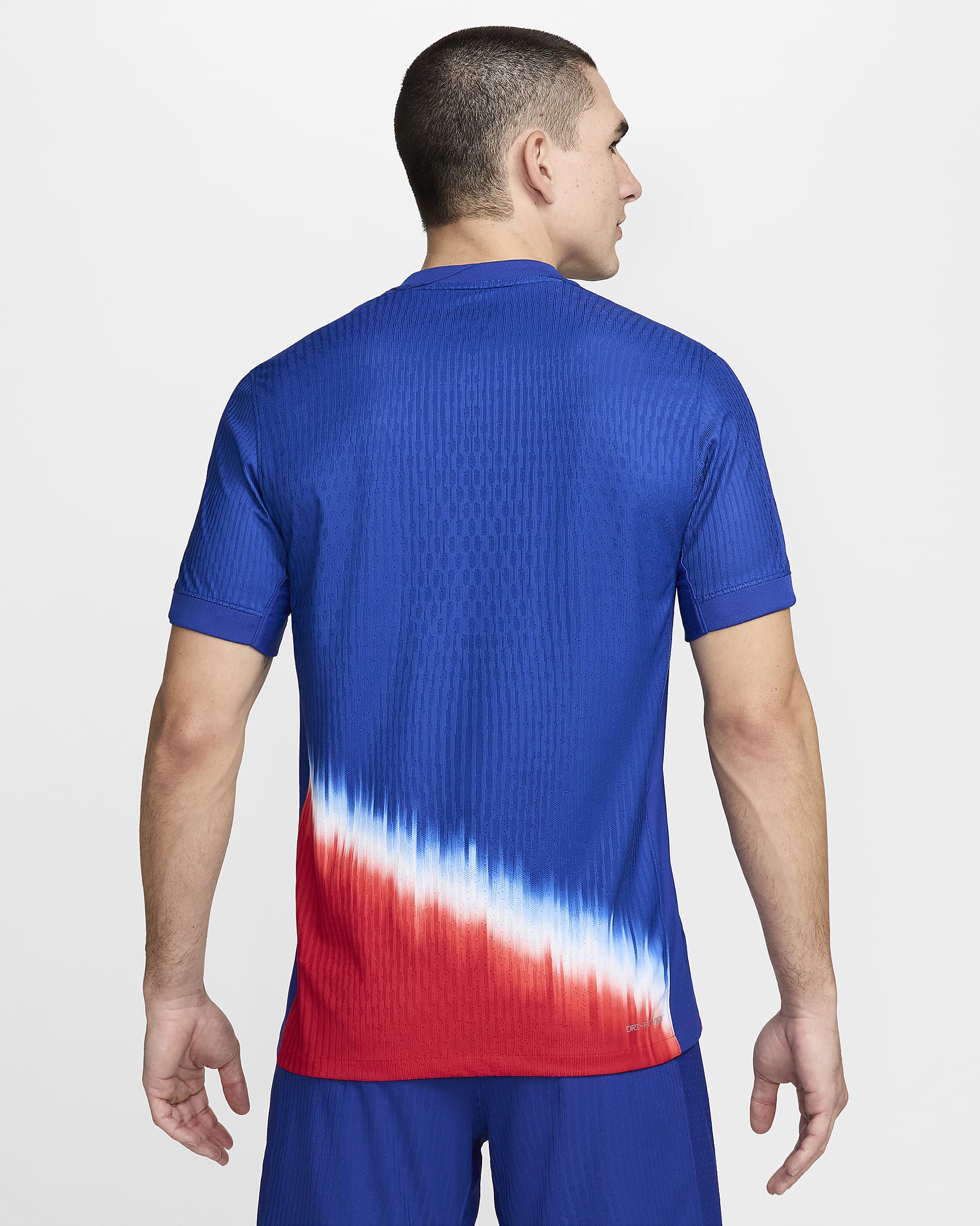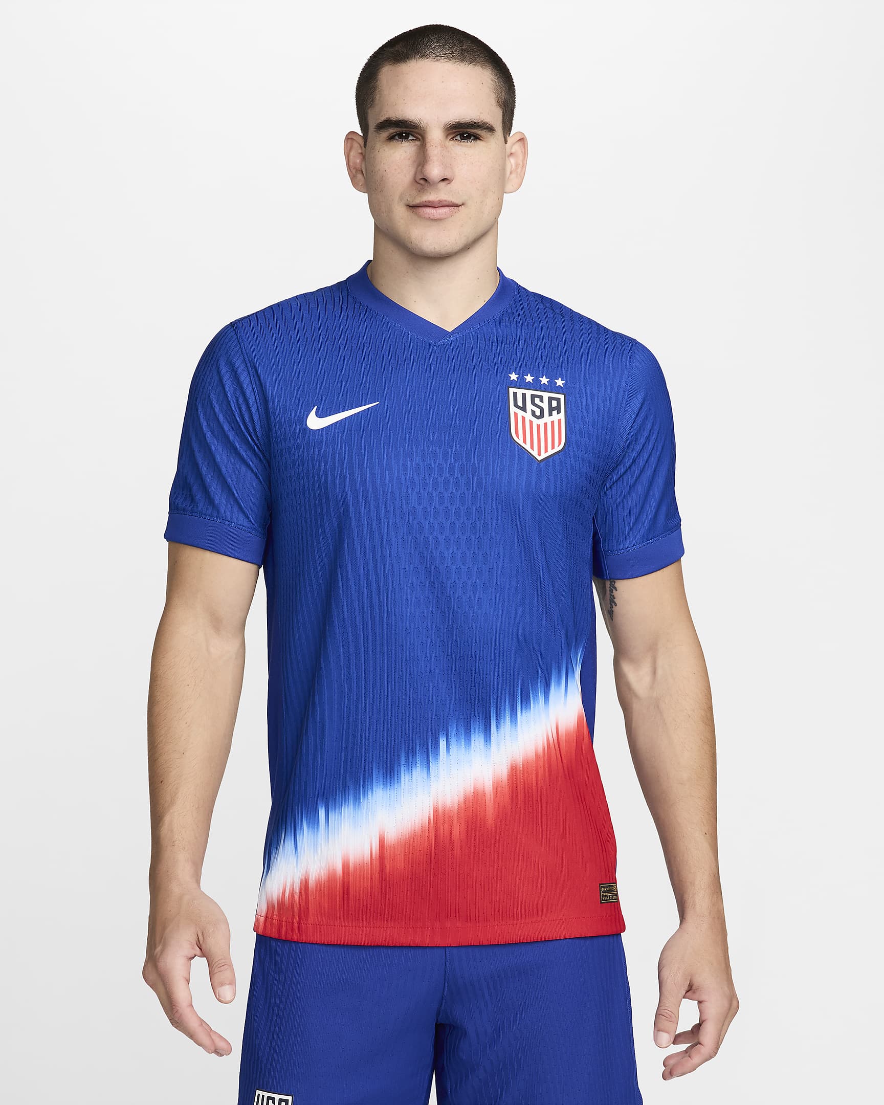 The latest Nike change shirt for the United States of America (USA) is in “Old Royal [blue]”, “Sport Red” and white and incorporates a tie-dye effect in its styling.