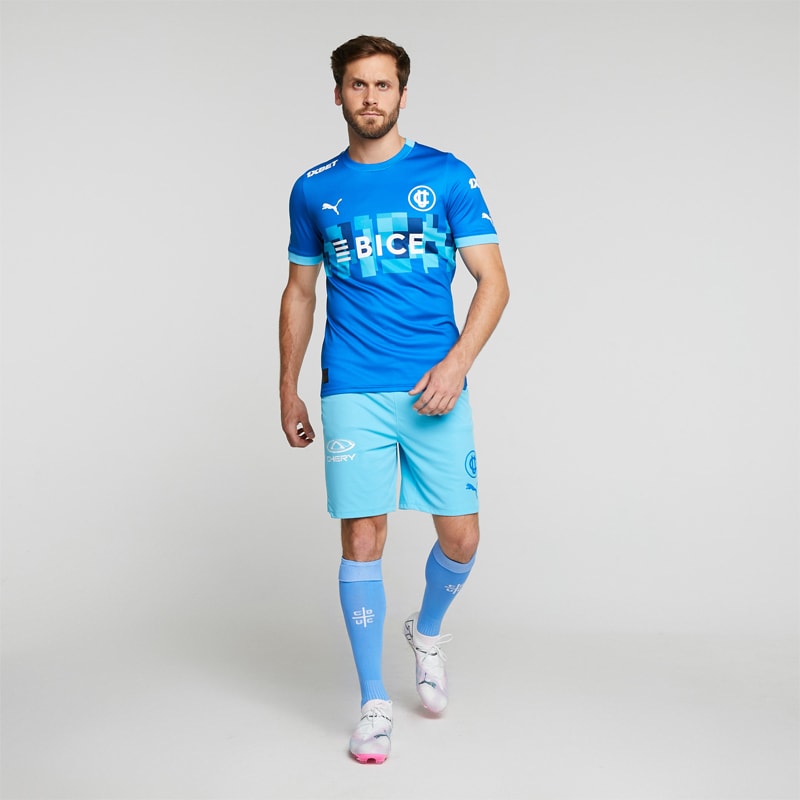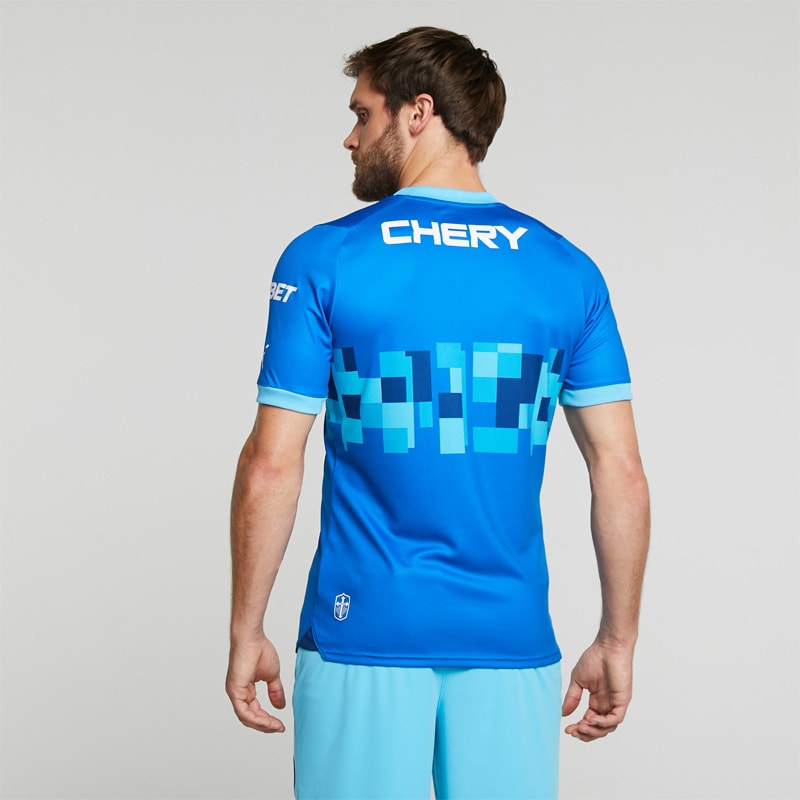 The new Puma secondary-change release in tones of blue has graphical embellishment that nods to Los Cruzados’ famous horizontal stripe on the trunk and the crest is a two-letter monogram placed on a circular shield.