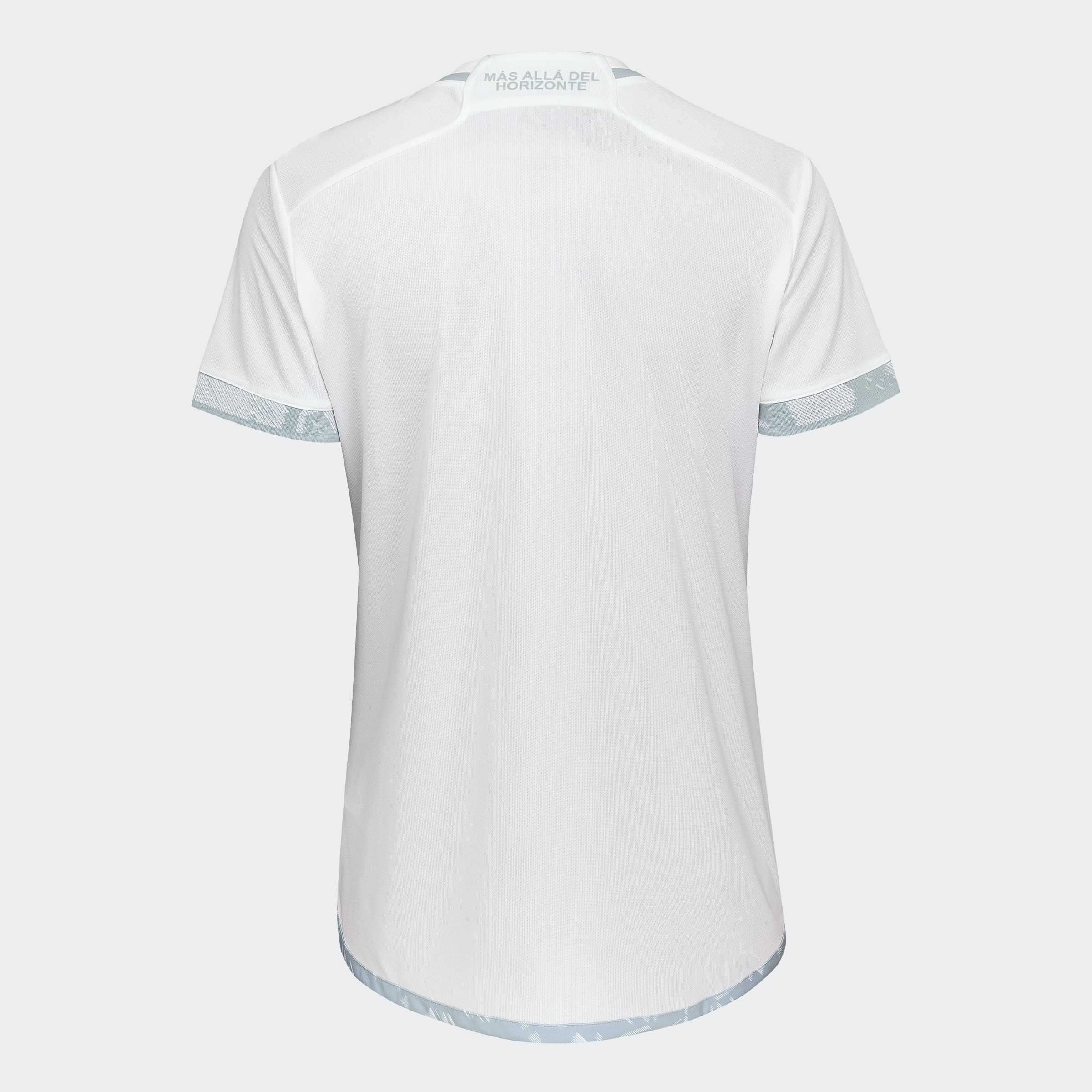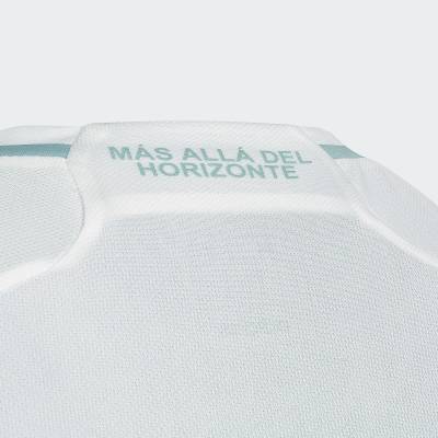 The adidas secondary release is in white with subtle light-contrast embellishment in very pale sky blue - implying water in its styling - with the most prominent focal points being the full colour crests on the chest.