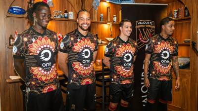 This is the new Valour Football Club 2024 away shirt by Macron.