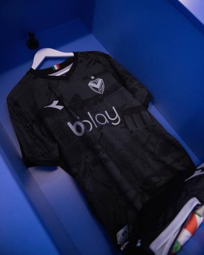Giving prominence to the Argentine giants’ ground to honour the fact a version of it first became Vélez’s home 80 years ago, in 1943, the black/greyscale third outfield release of 2023 has a graphical print evoking the stadium and detailing - including the crest and partner logos - is in silver/grey.