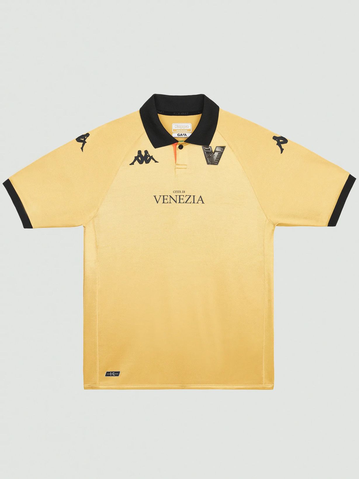 Kappa-branded, the new secondary-change design for the Italian Serie B side is in gold - as a nod to the stylings of both Venetian art and architecture through history - and is minimally embellished in black.