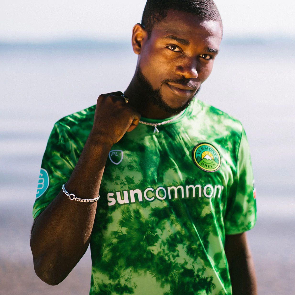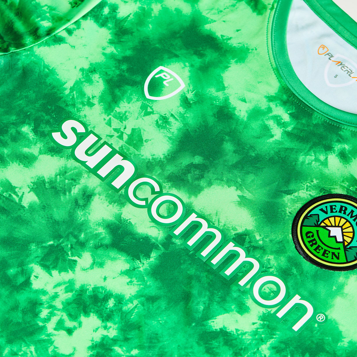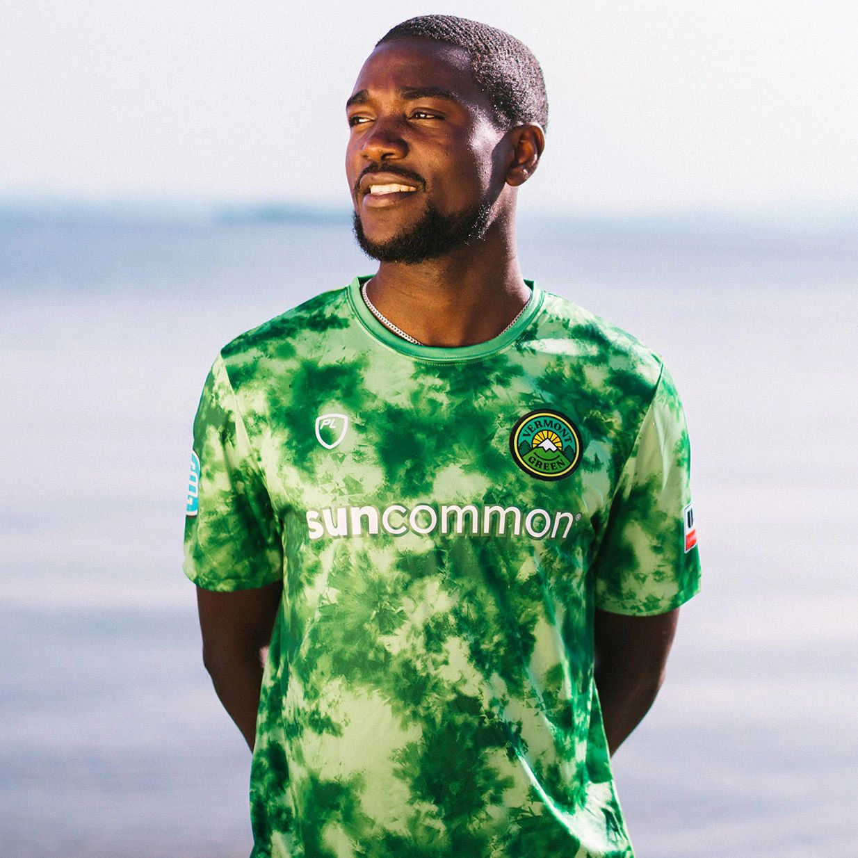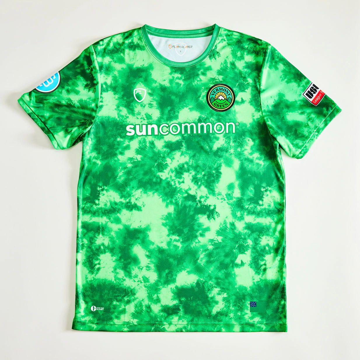 This is the new Vermont Green FC 2022 Home Kit, made from 100% recycled polyester.