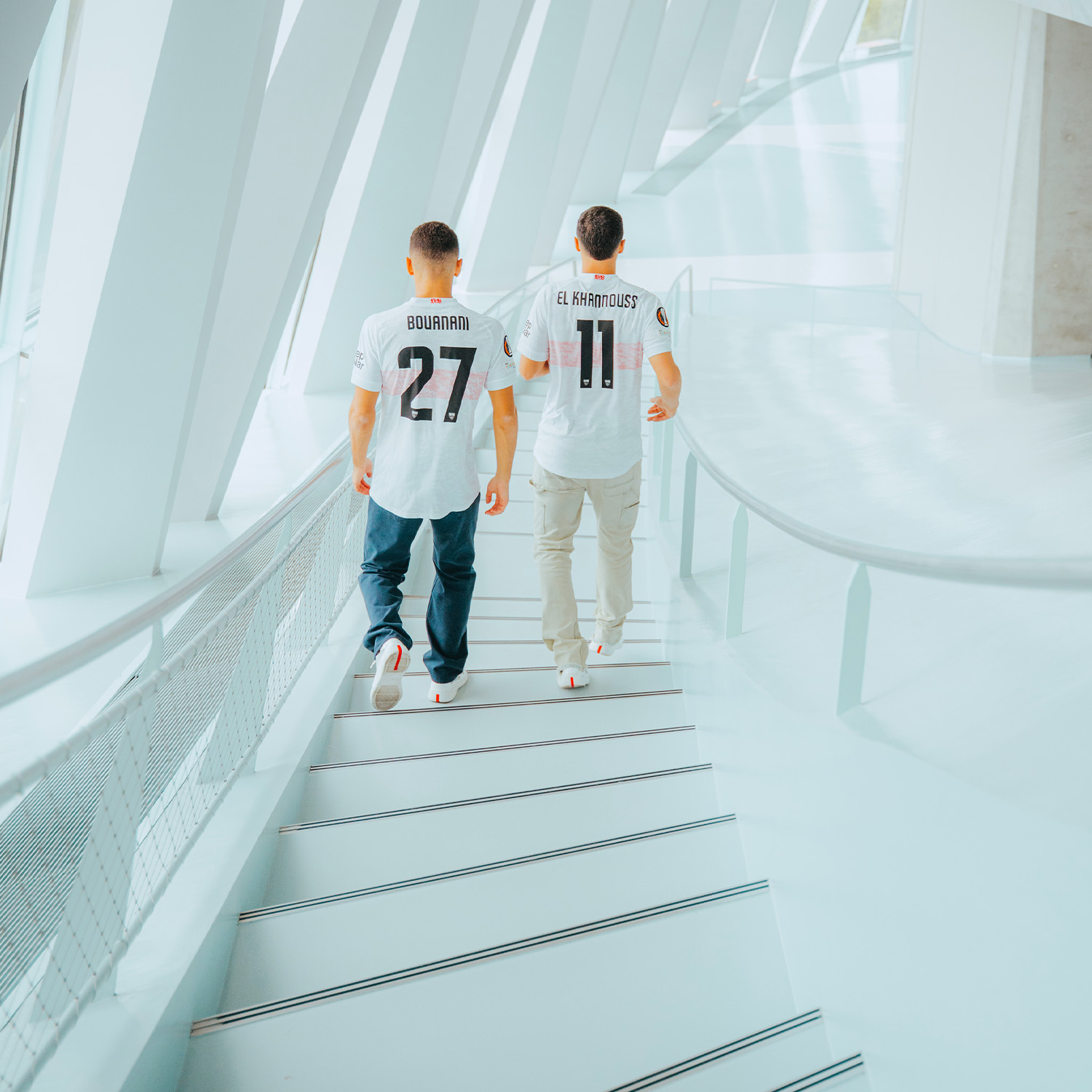 Based on the club’s centenary Brustring shirt, the design features the signature red hoop fully woven into the jacquard fabric. To comply with UEFA regulations, the band is mirrored on the inside of the back panel, ensuring the Brustring remains uninterrupted while still meeting competition requirements.
