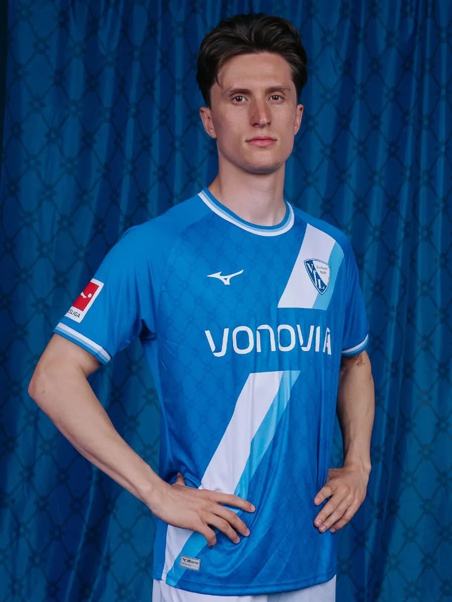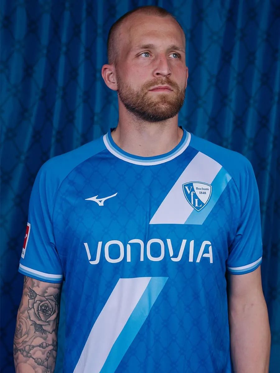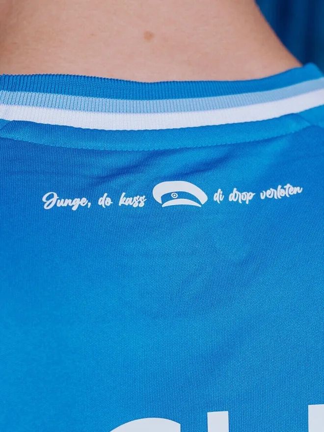 Produced by Mizuno, the shirt features Bochum’s signature blue with a white sash across the front.The shirt features a full-colour club crest, white sponsor logos, and a tonal pattern, along with a white collar and cuffs. The back of the shirt carries the commemorative phrase just below the collar.