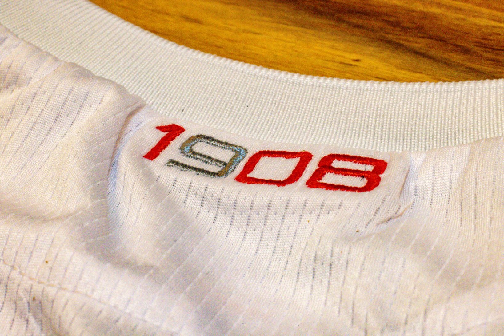 Macron’s sleeve logos are in red, trim is in silver/grey - matching the “1(9)08” hybrid of the district name and year of foundation on the upper back - and the kit has been debuted with white shorts and socks.