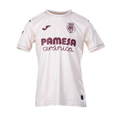 Villarreal’s crest is applied using SPORTECH technology, a seamless silicone method that reduces weight and prevents skin irritation. The Pamesa Cerámica sponsor branding appears in garnet across the front, with the Joma logo also matching in colour.
