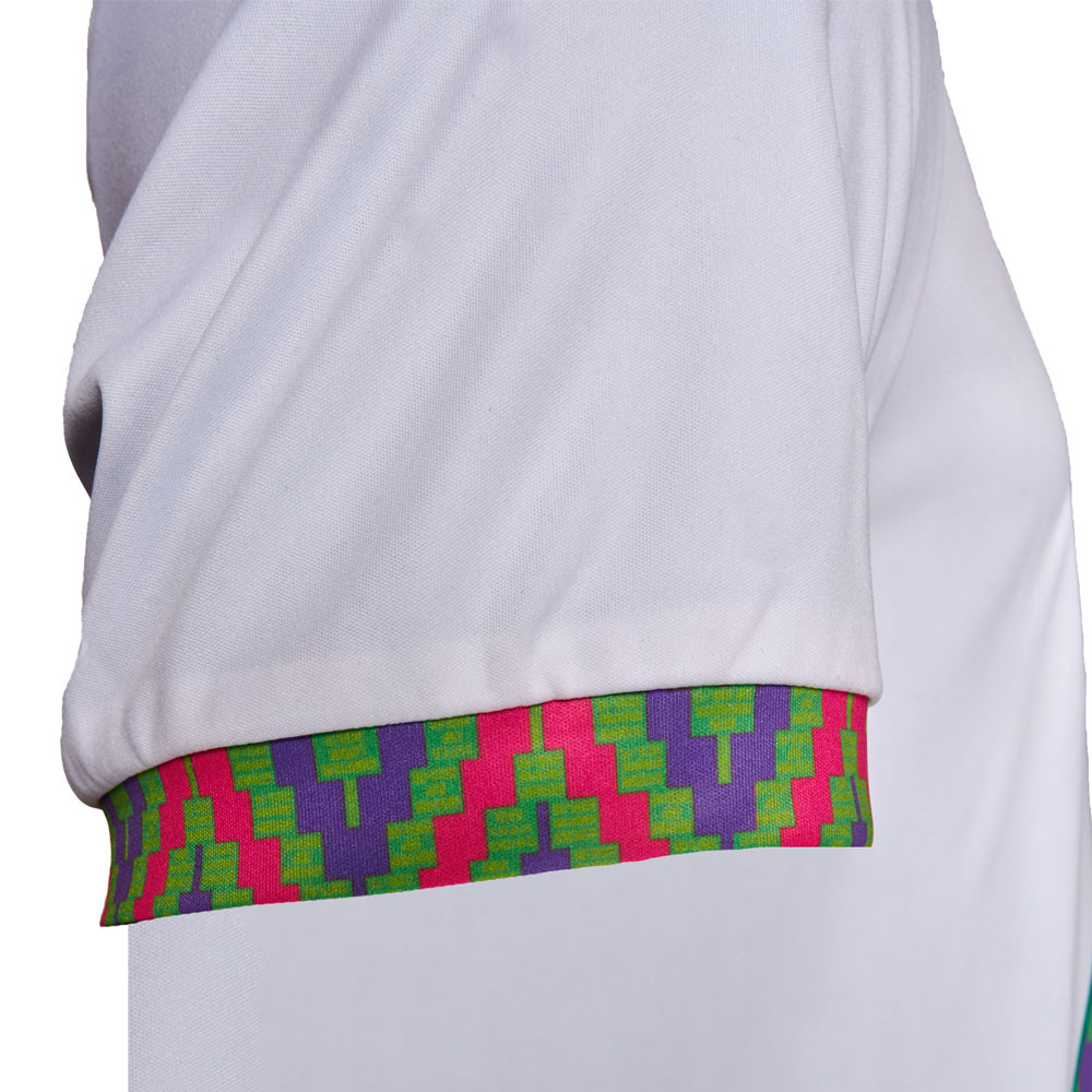 The patterning on the sash - in green, pink and purple, which replaces the red Peru actually wear - is repeated on the cuffs whichever way round the shirt is worn, while the “Werder” side’s patterning includes notes of the many “Grün-Weißen” campaigns Pizarro played a part in.
