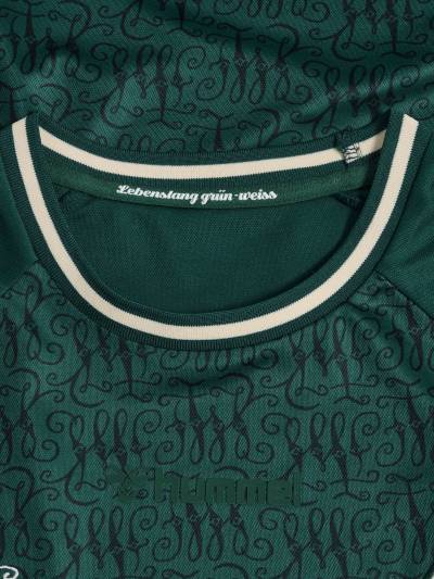 It's a celebration of heritage, with "Lebenslang grün-weiß" (Forever Green-White) inscribed at the nape and the anniversary emblem placed just below the collar, epitomising the club's historic journey in football.