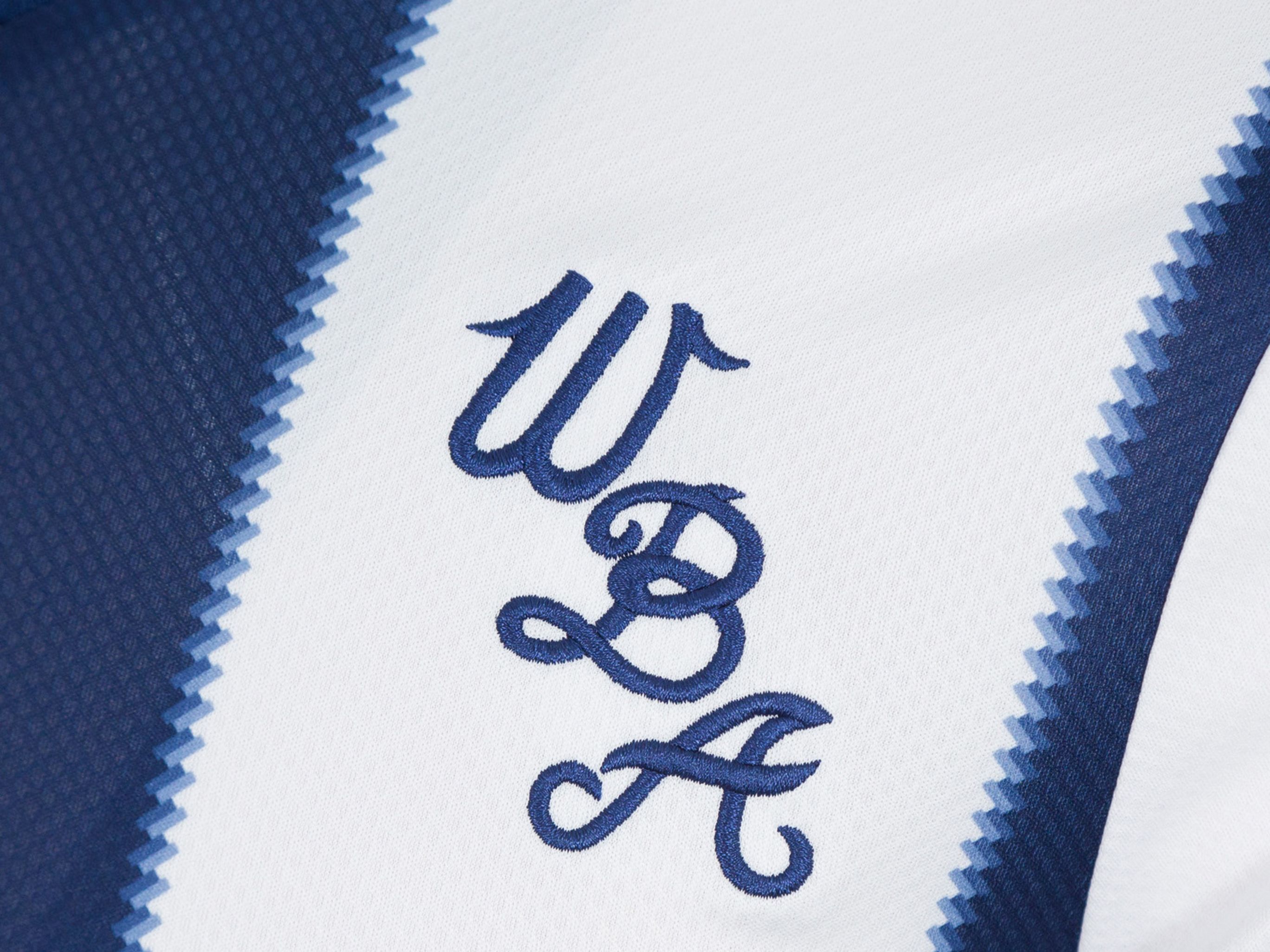 Exciting features include iconic italic ‘WBA’ lettering in place of the club crest, while the traditional blue-and-white stripes incorporate jagged edges, as seen on the original.