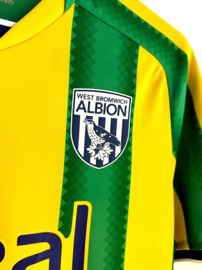 The club crest sits on the chest opposite the Macron logo, while a 125 Years at The Hawthorns emblem is positioned below the back collar to mark the stadium’s anniversary. A detail inside the hem reads Tony Bomber Brown’s quote, “The moment I walked into The Hawthorns I felt I was home.”