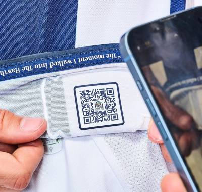 The neckline includes an image of The Hawthorns, while 125th-anniversary logos appear on the front and back, and a QR code inside the shirt links fans to 125 pieces of historical Hawthorns content curated by Club Historian Dave Bowler.