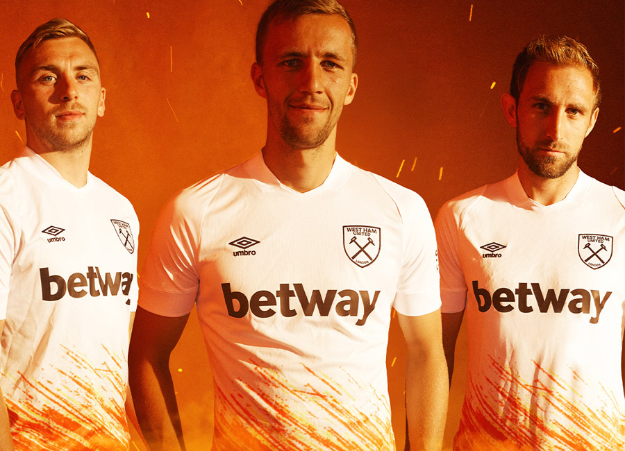 The Third Kit’s striking design features a White Shirt with a vibrant spark – inspired by the Club’s roots deep in the heart of London’s East End at Thames Ironworks.