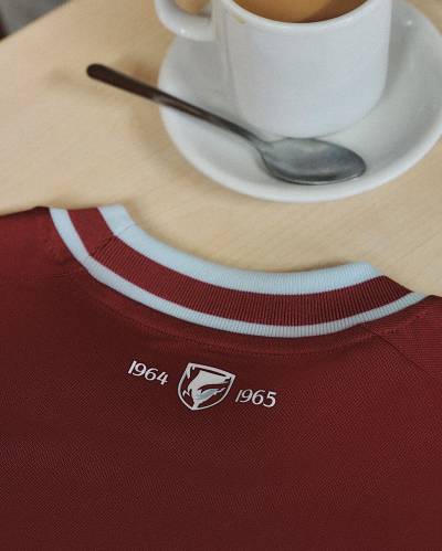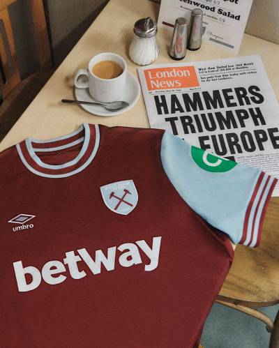 The 2024/25 season coincides with the 60th anniversary of West Ham United's European Cup Winners’ Cup victory. The new shirt includes a claret body with blue sleeves, a round neck, and claret detailing on the sleeve cuffs, reflecting the classic 1960s style. It also features a special commemorative Umbro diamond logo, celebrating the British sportswear company's 100th anniversary.