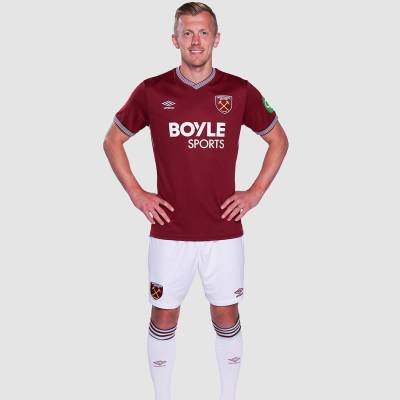 A full-colour club crest sits on the chest, with the crossed hammers symbol placed on the back of the neck.