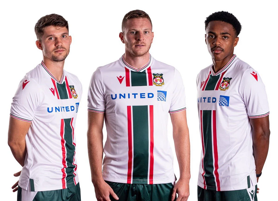 This is the new away shirt for Wrexham Association Football Club (AFC) for the 2023/24 season, designed by Macron.