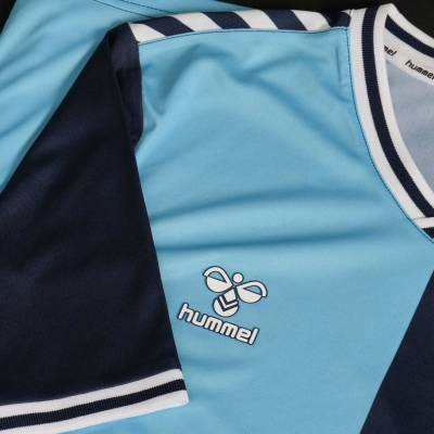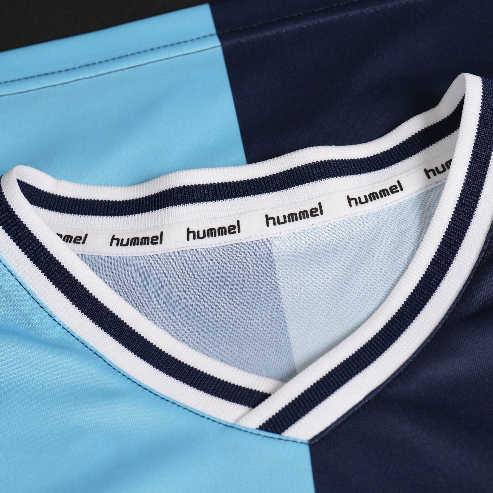 The 2023-24-season design for the EFL League One side is relatively simple, staying faithful to the sky-blue and dark-blue quarters look, with a full-colour crest and chevrons on the shoulders.
