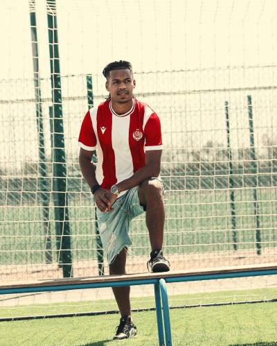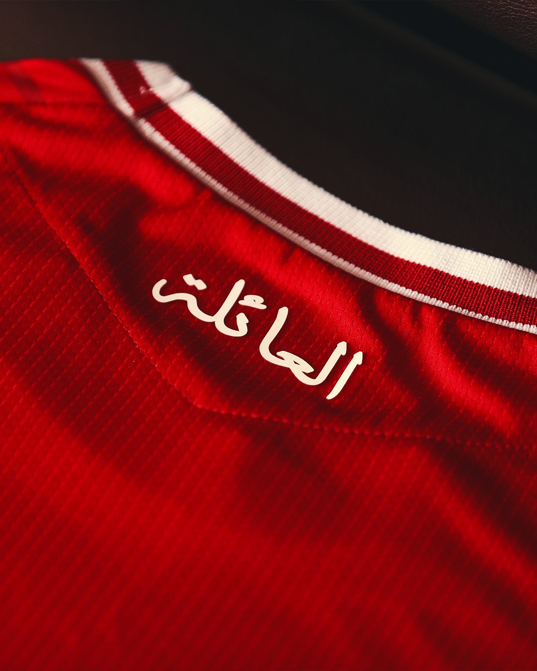 The said crest keeps to the dual-colour palette, there is Arabic script on the upper back and the kit is completed with red shorts and socks.