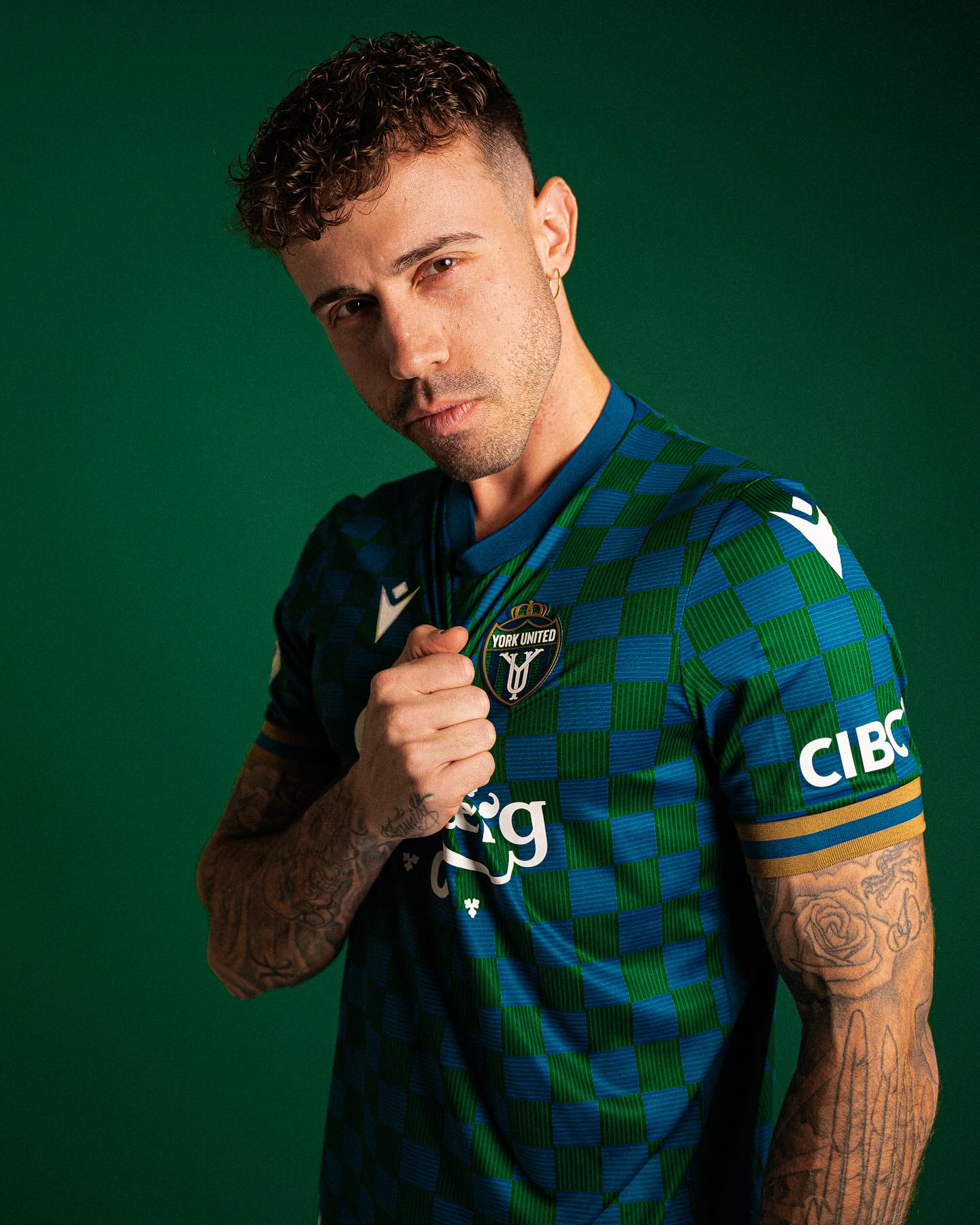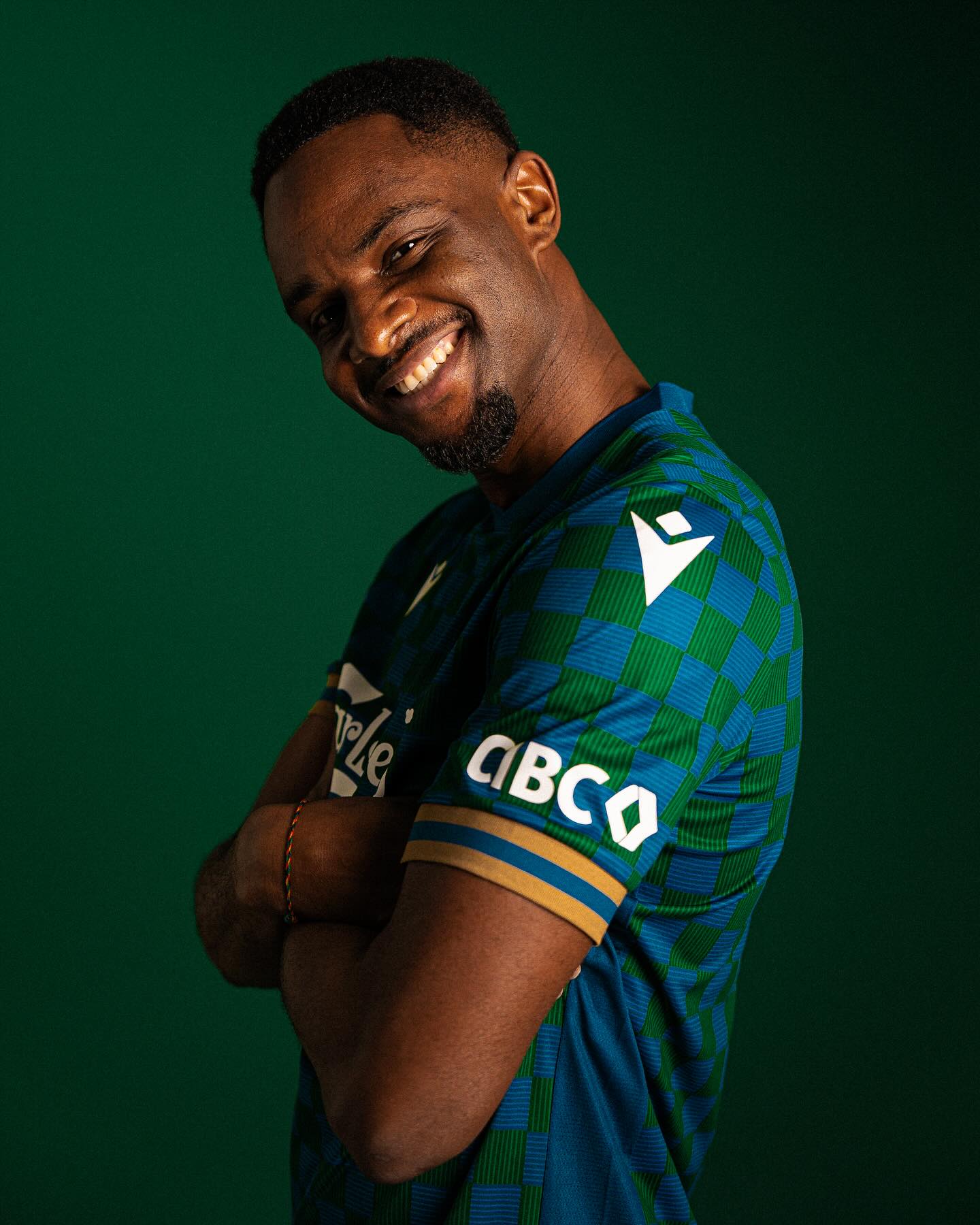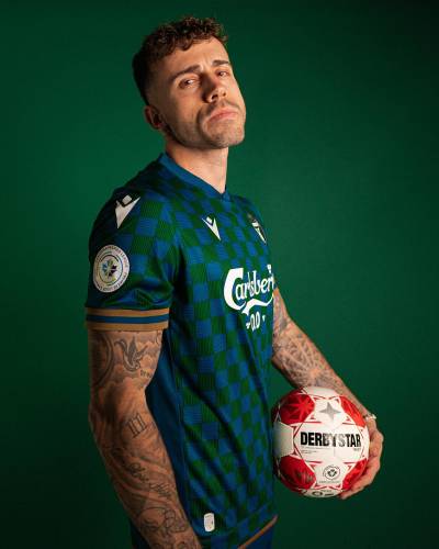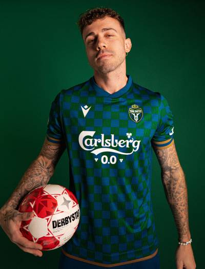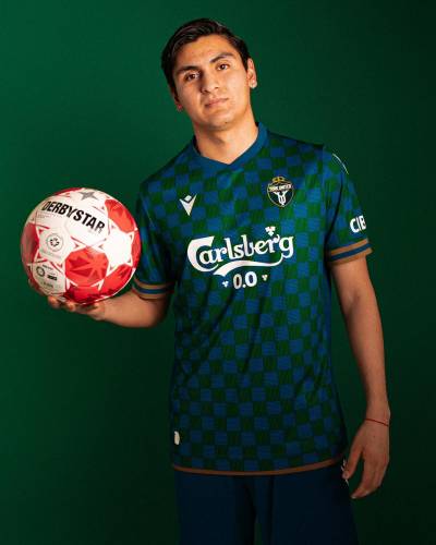 This year's Macron design innovatively updates the club's signature blue, green, and gold colours with a bold checkered pattern, bridging the gap between traditional football kits and contemporary streetwear fashion.