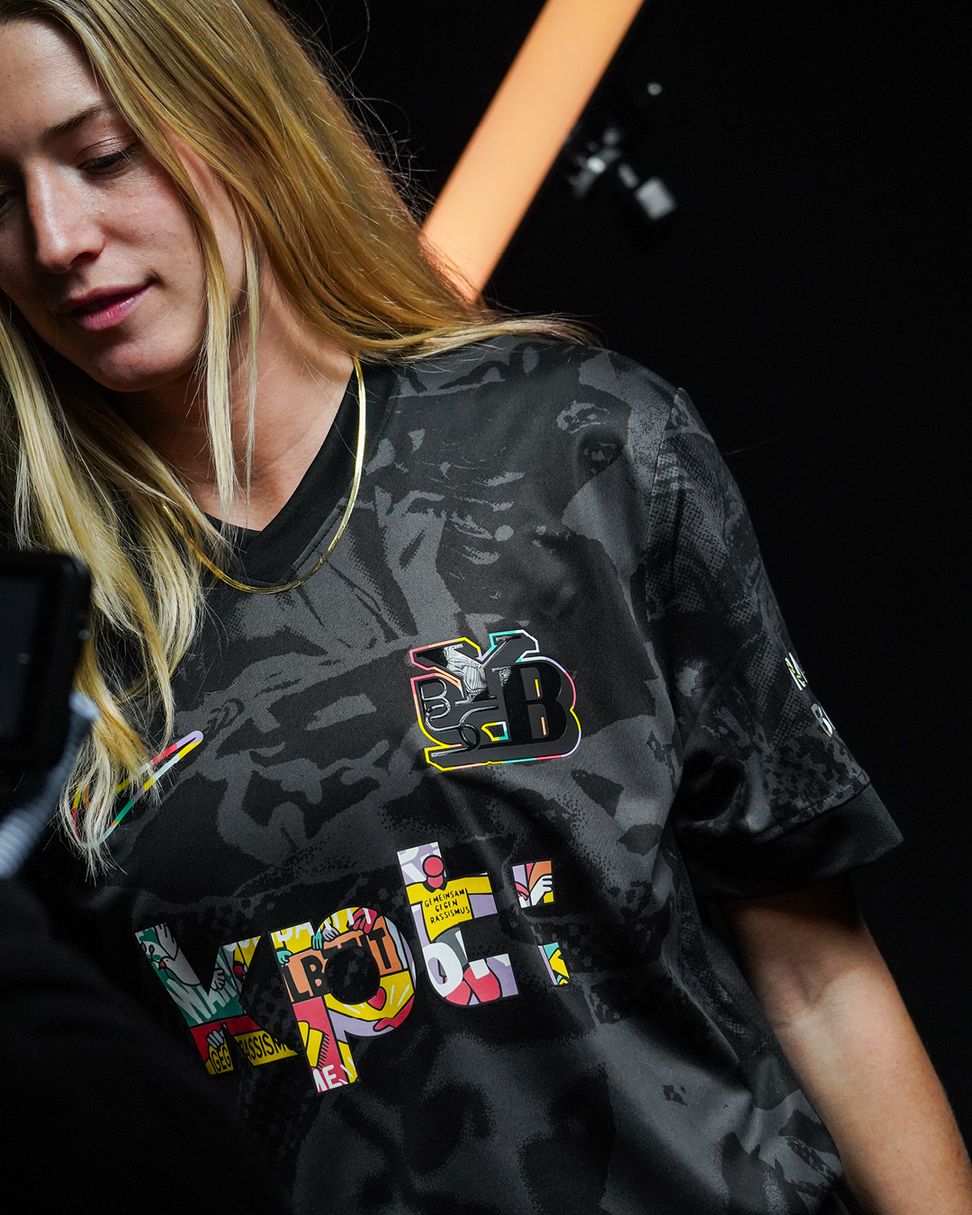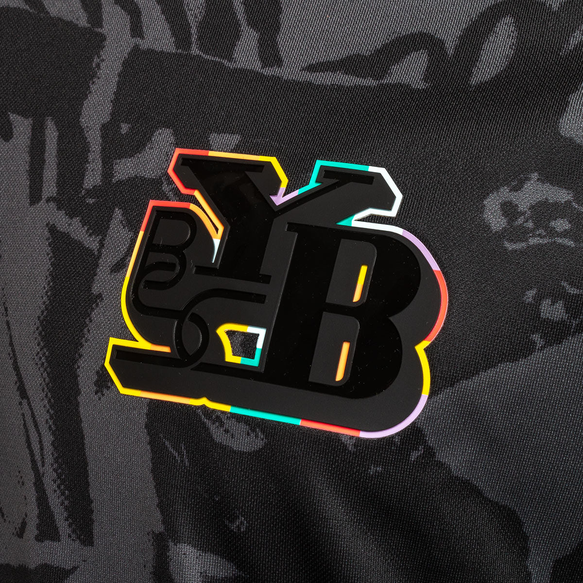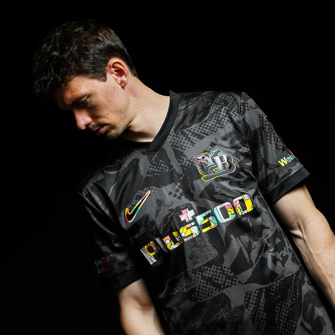 The design features a black base with an abstract tonal pattern and vibrant comic-style graphics across the Nike logo, sponsor, YB crest, and the name and numbers on the back. The club’s message is also reflected in a unique presentation box that highlights respect, community, and equality.
