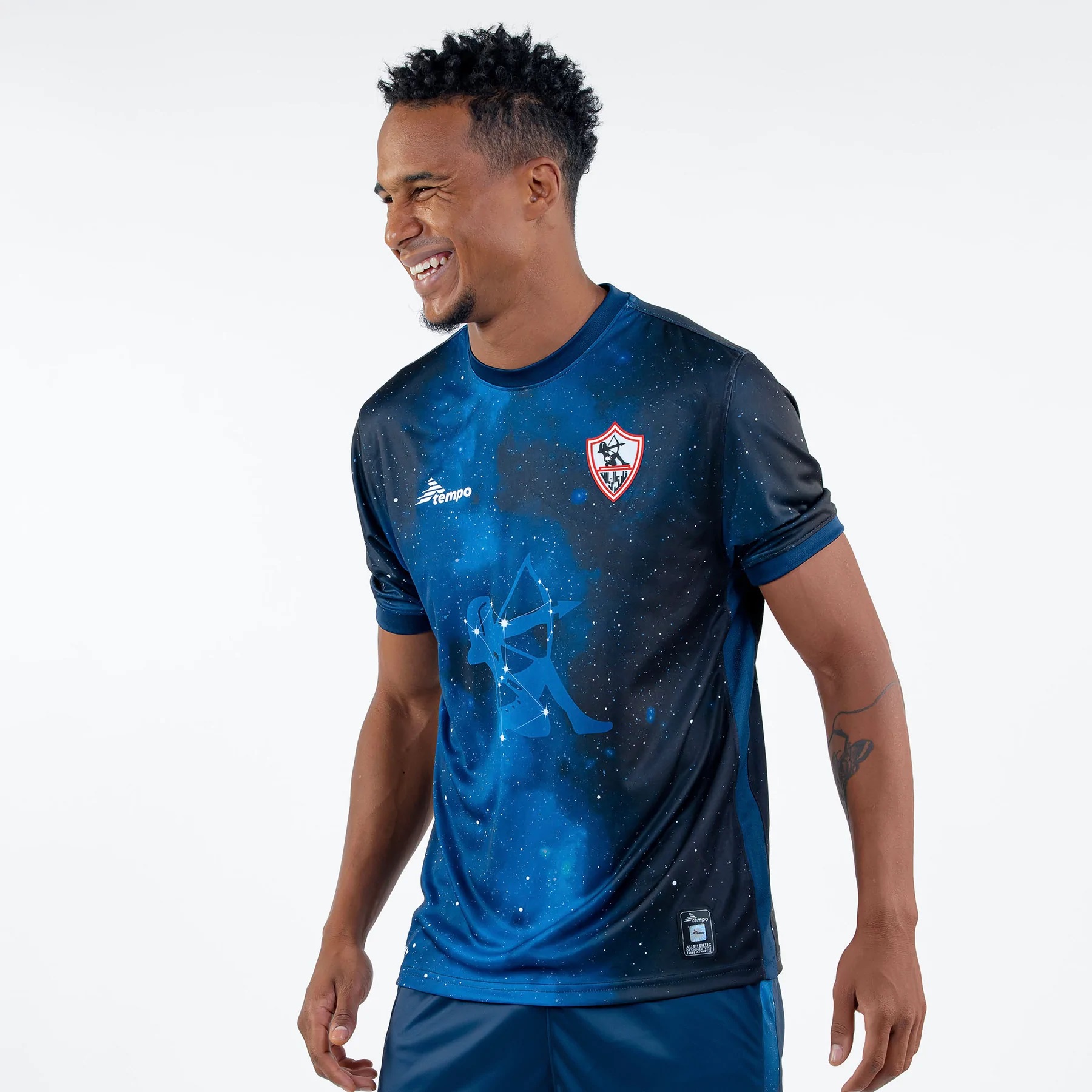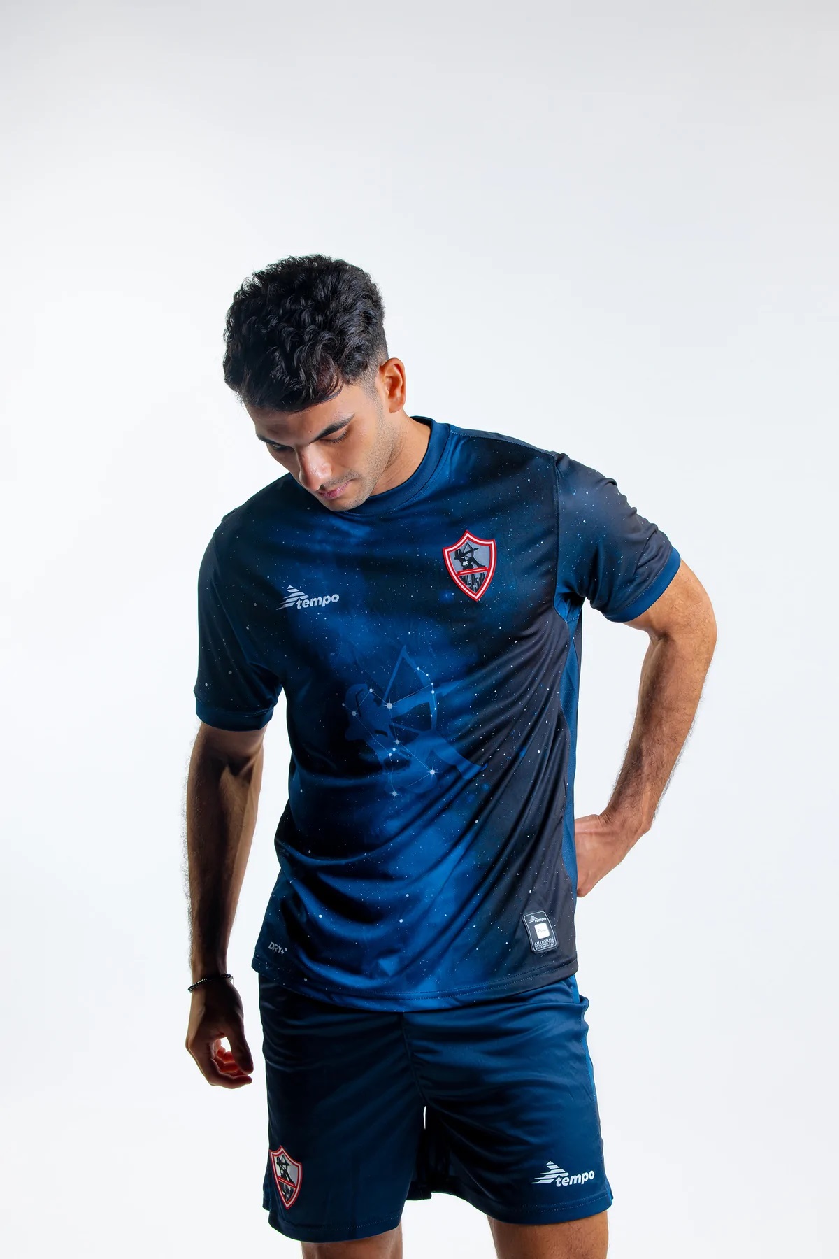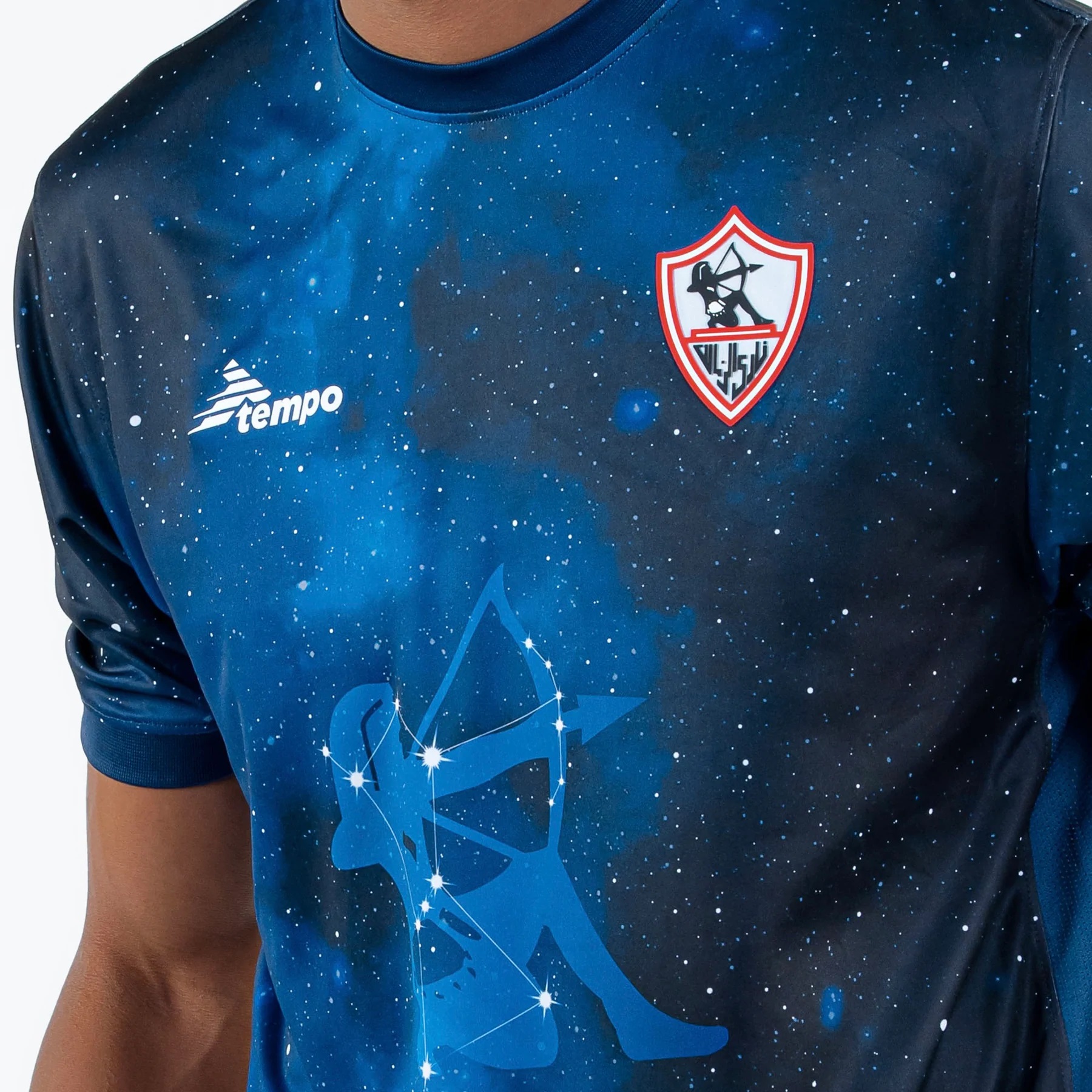 Referred to in the marketing as the “Galactic Hunter”, the configuration is interpreted as representing the figure on Zamalek SC’s crest - featuring here in full colour - and a tonal version is applied to the shirt to highlight the relationship.