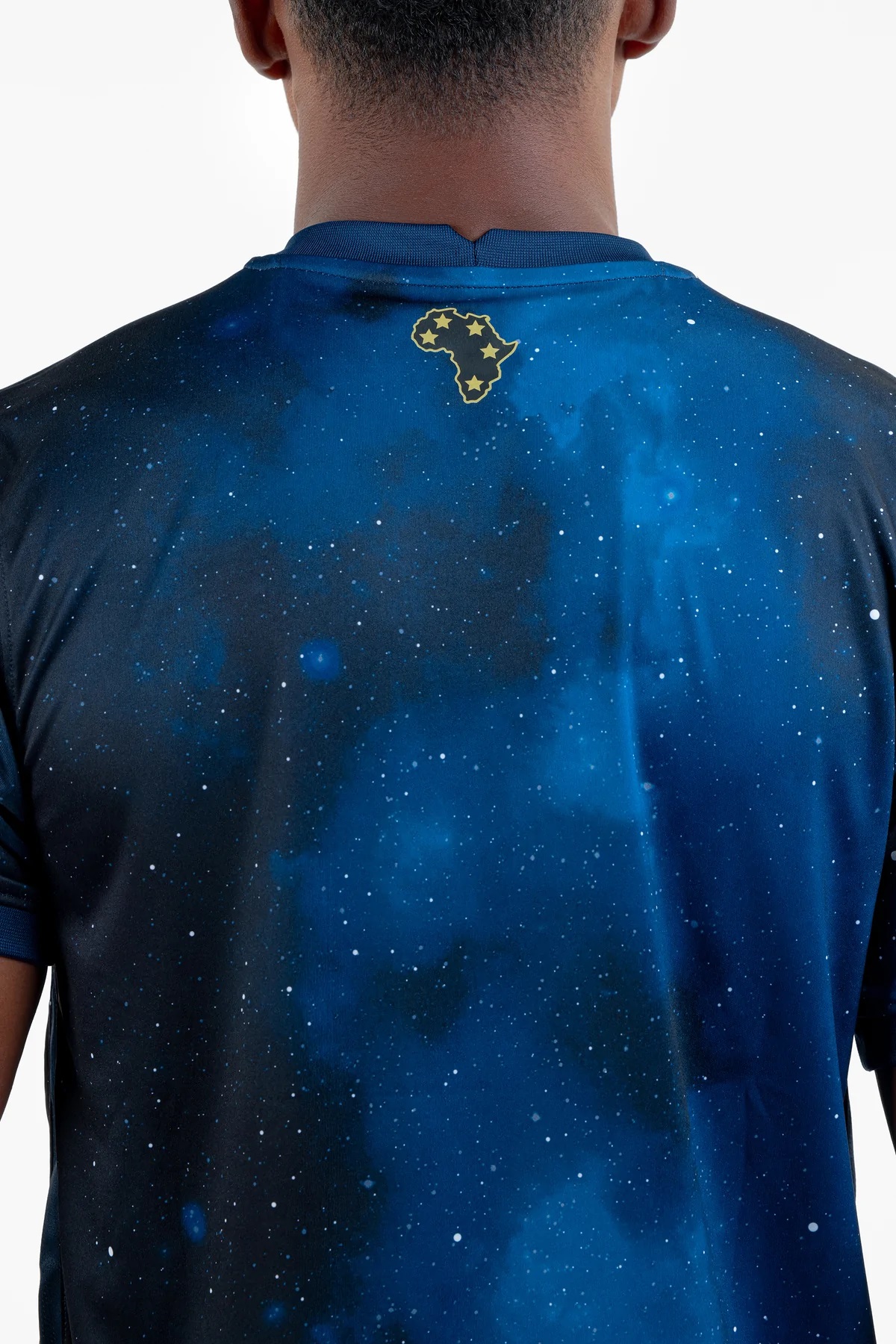 The Tempo logo contrasts in white and the upper back features a silhouette of Africa with five gold stars to signify Zamalek’s quintet of African champions cup triumphs, on a shirt that forms a kit with blue shorts and socks.