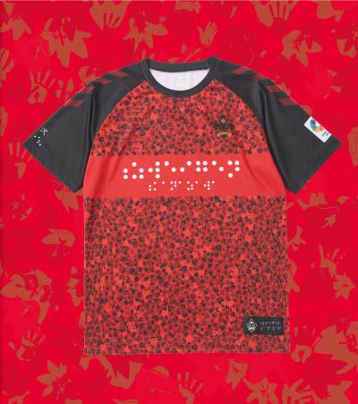 This is Japanese J2 League side Zweigen Kanazawa’s Hummel "Change the World Through Sport" Braille shirt.