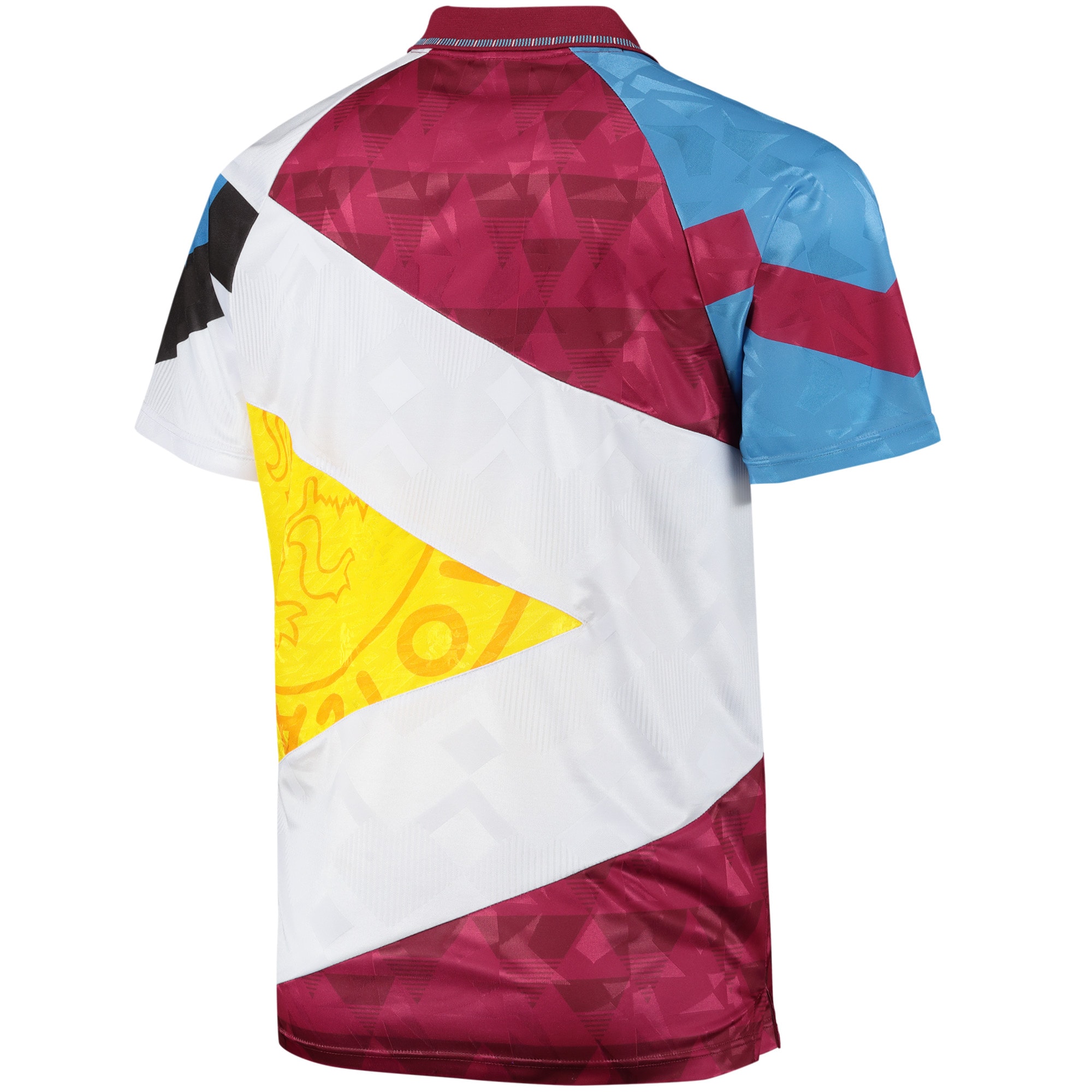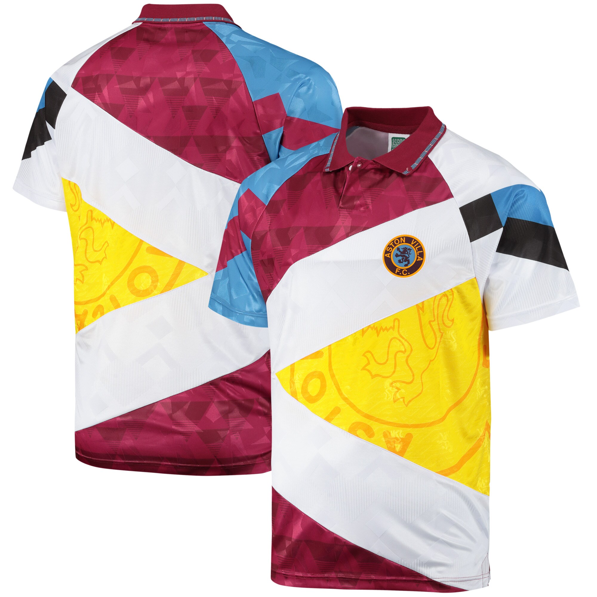 The fan item, billed with the year “1990” but including the 1991-93 Third shirt mashed up with the 1990-92 Home and the 1990-93 Away, combines the Villans’ famous claret and blue with yellow, black and white.