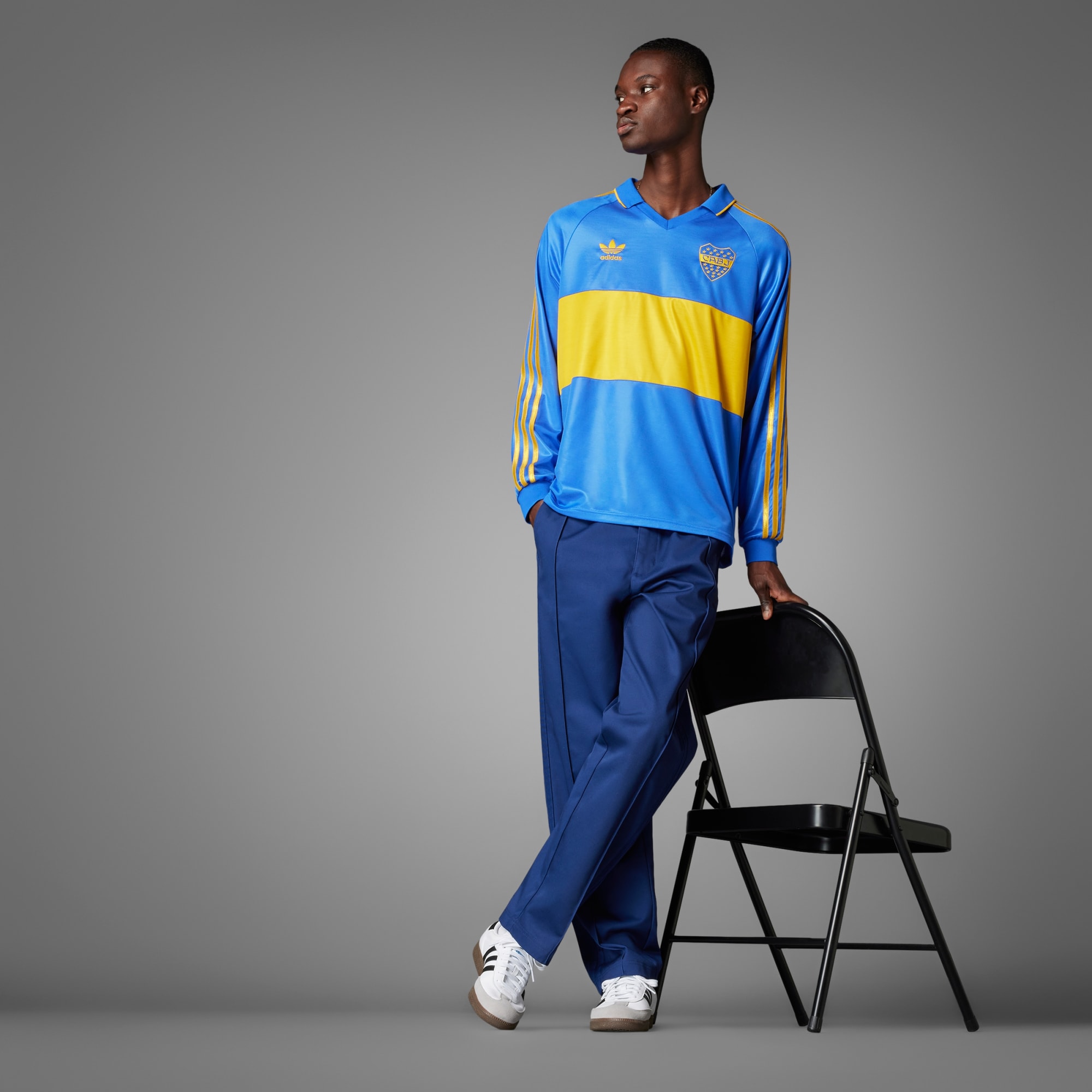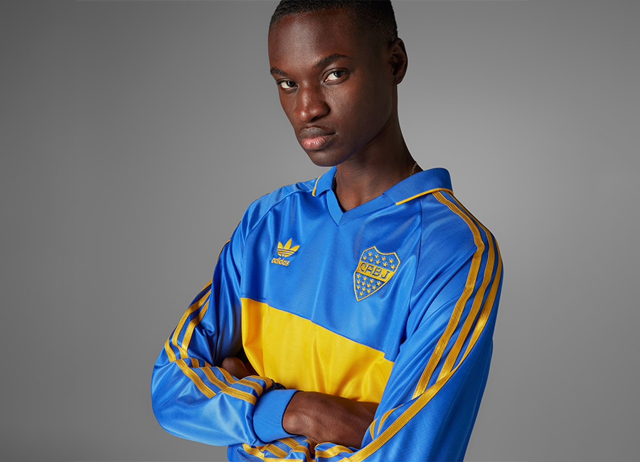 The classically styled and Trefoil-carrying throwback “1993 Jersey” is in “Hi-Res Blue” and “Crew Yellow” - to represent Boca’s Azul y Oro (Blue and Gold) alias - has a shield crest and three stripes running from the collar to the cuffs on the long sleeves, and the central contrast band is present and correct too, and devoid of a sponsor.