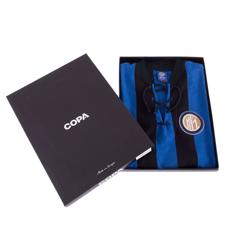 Copa's home version of the F.C. Internazionale 1958 - 59 Short Sleeve Retro Football Shirt is made in Europe with great care and pride, using the best possible fabrics for the right vintage look & feel and as a finishing touch is packed in luxury gift box.