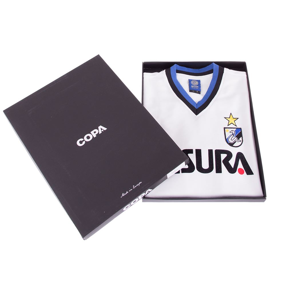 The Copa's away version of the F.C. Internazionale 1986 - 87 Short Sleeve Retro Football Shirt is made in Europe with great care and pride, using the best possible fabrics for the right vintage look & feel and as a finishing touch is packed in luxury gift box.