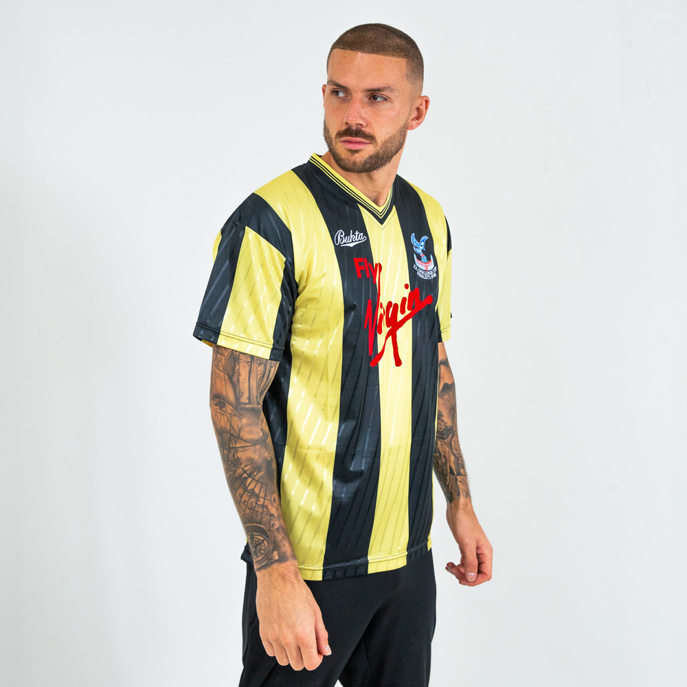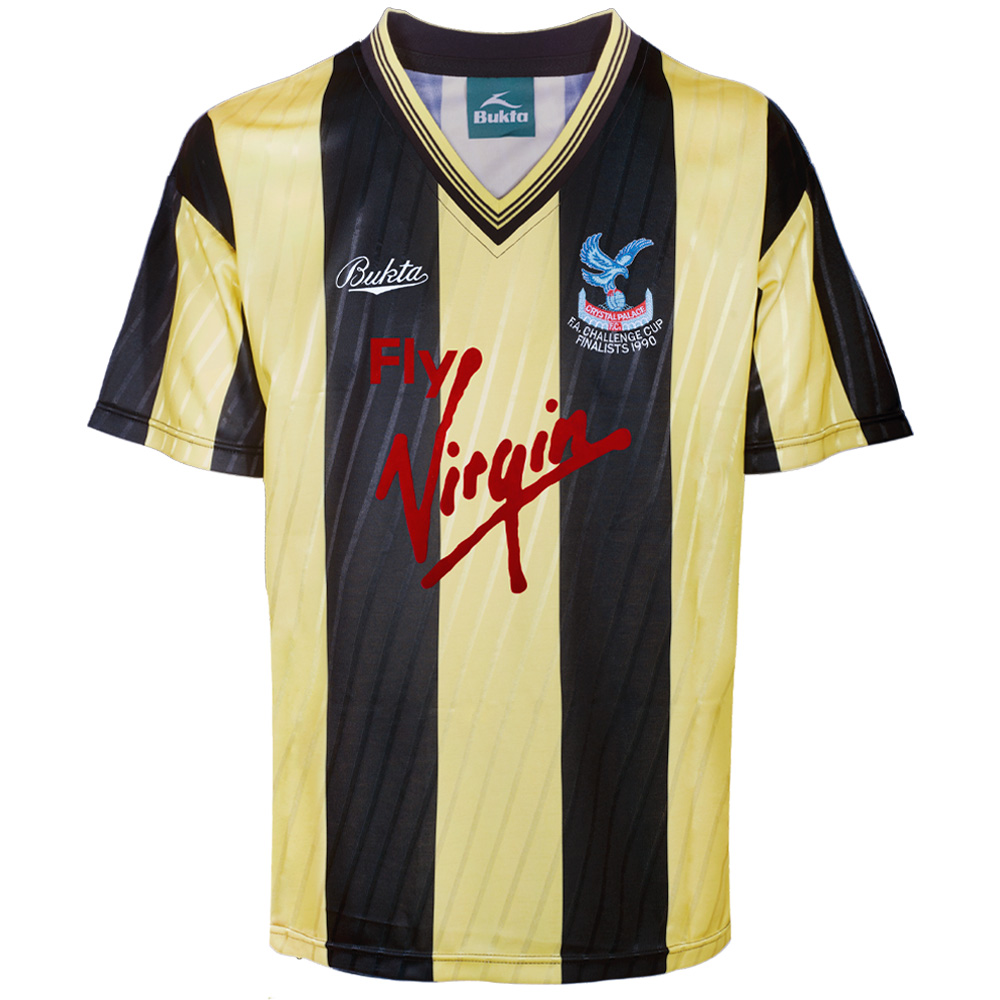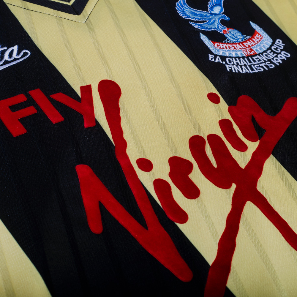After the thrilling first match in the tie, the Eagles eventually came up short, but this “Fly Virgin”-emblasoned design is great reference to a thrilling campaign, where the likes of Ian Wright and Mark Bright got them so close to glory.