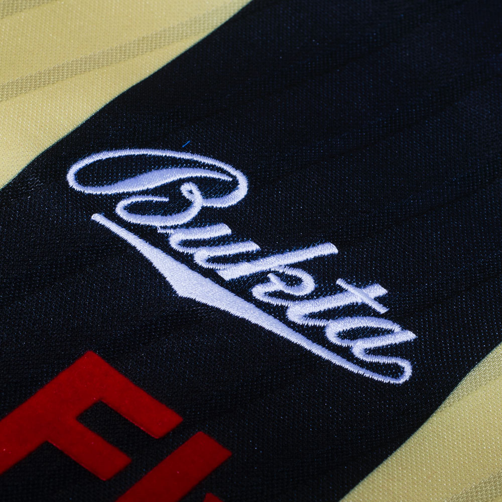 Despite being a remake, the branding is all of original supplier Bukta and the black-and-yellow striped affair is hugely accurate to the version worn in the 1989-90-season FA Cup Final replay.