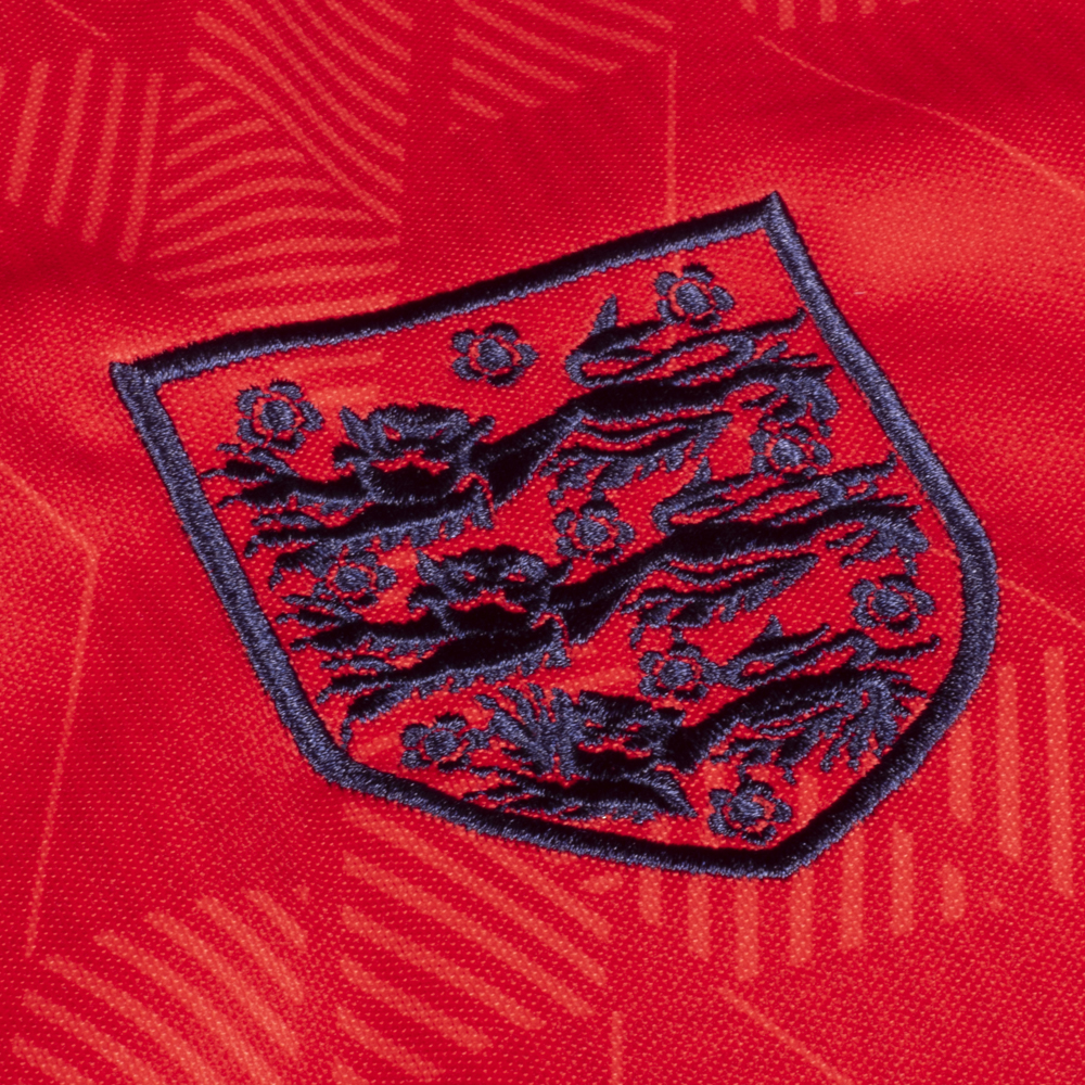 Part of Score Draw’s SD90 range (1990 Heritage Collection), this England 1990 Away Track Jacket pays homage to the geometric patterns of the England 1990 Away shirt and includes hand-sewn and embroidered with ‘the Three Lions’.