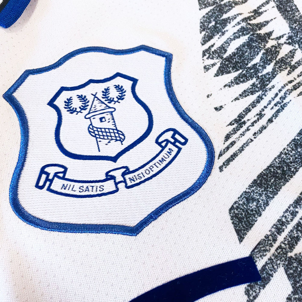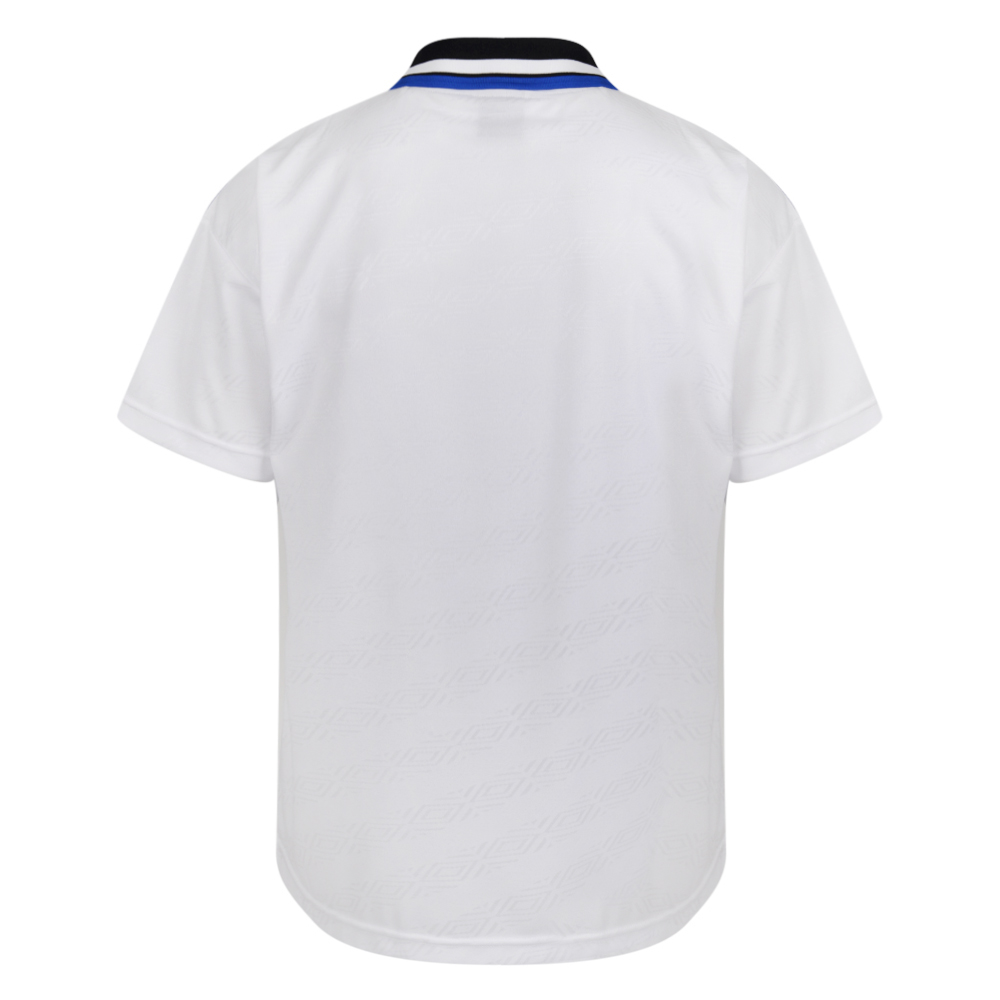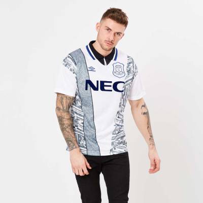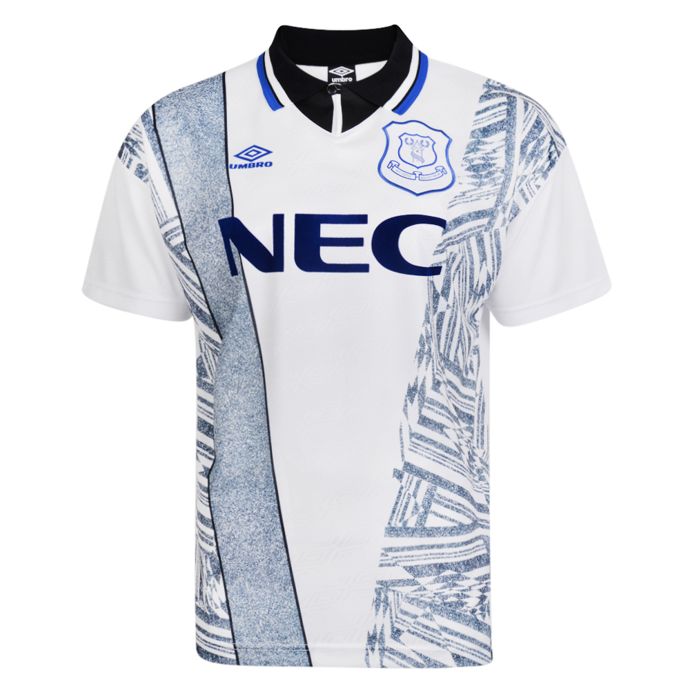 Including a button-up collar and the logo of original sponsor NEC - “DANKA” was carried the following campaign - the white shirt with black-and-blue embellishment will be a desirable item for many, particularly Evertonians nostalgic for better times.