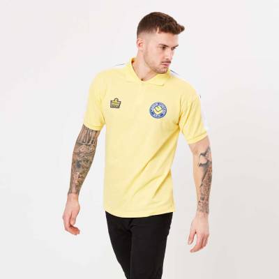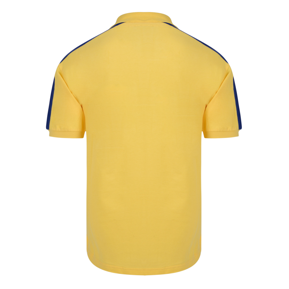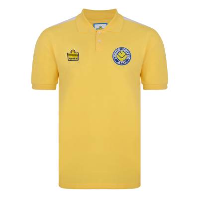 Lacking the design exuberance of other Admiral shirts of the time, A retro version of a yellow 1970s Leeds United Away release has been made available.