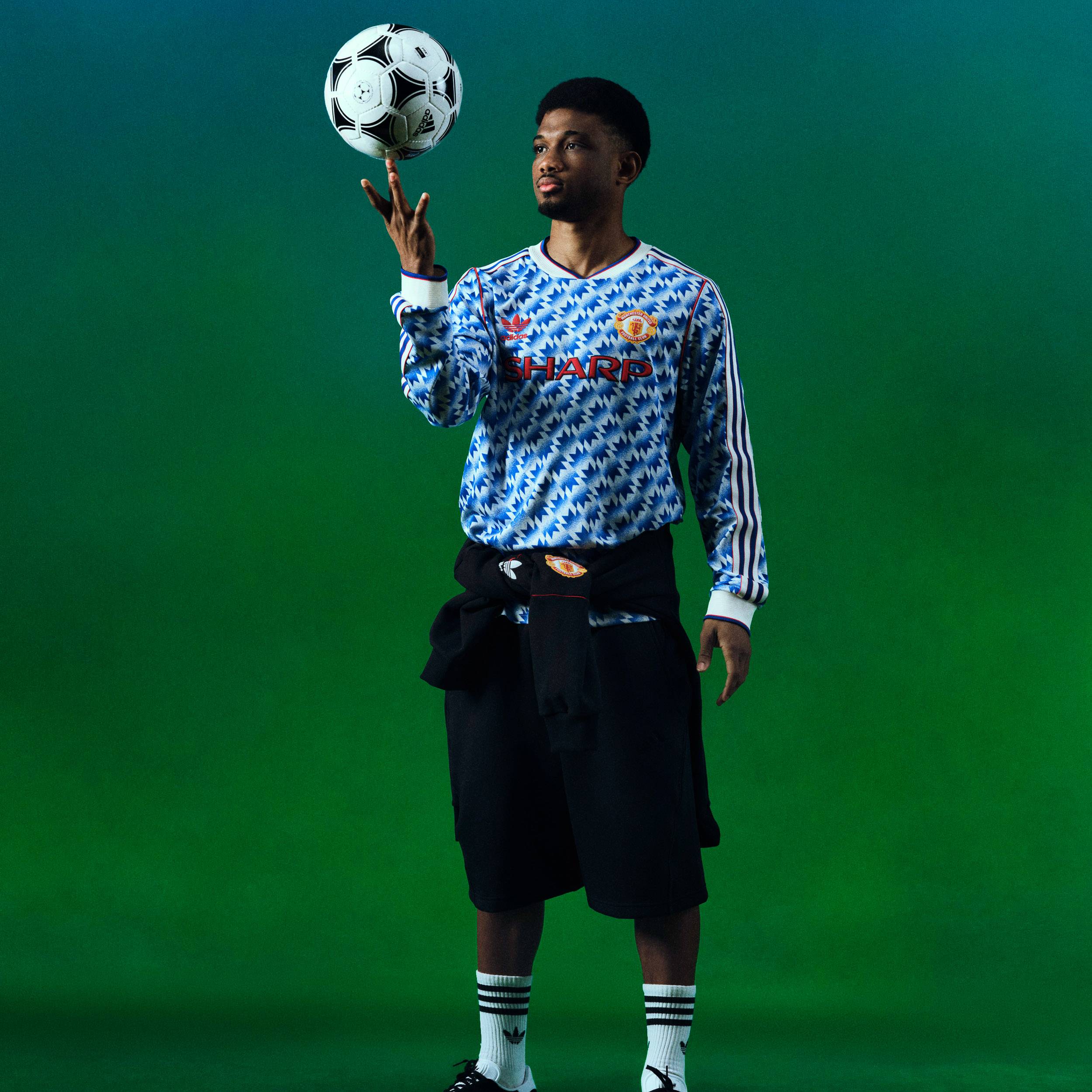 The Manchester United 1990–92 adidas away shirt returns as a faithful recreation of one of the club’s most recognisable designs, bringing back a defining look from the early 1990s.