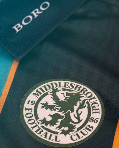 Middlesbrough FC and Errea have launched a retro collection, including a reissued Middlesbrough 94/95 away shirt, with subtle details, a two-tone green colourway, and gold accents.