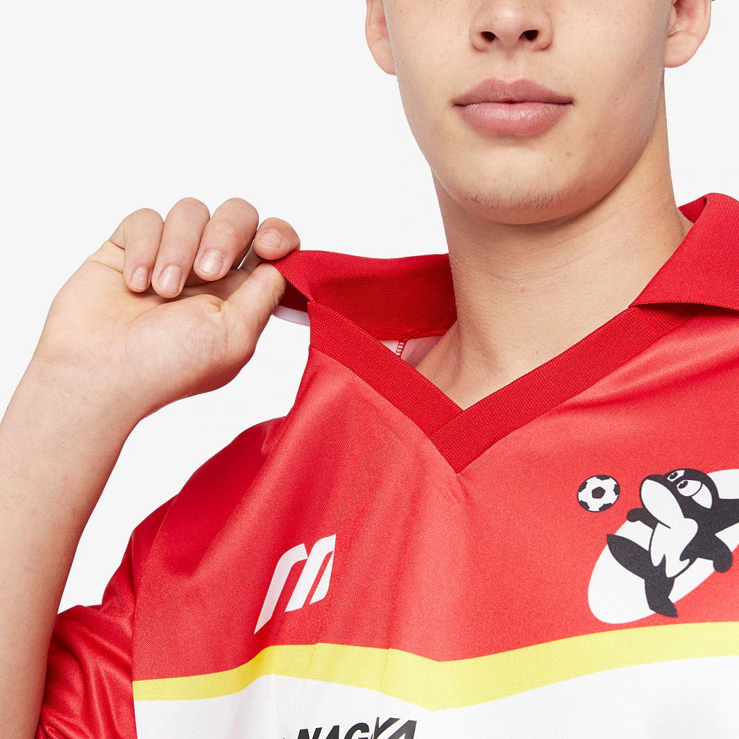 A remake of Grampus’s first J-League kit, worn during the inaugural season of 1993, the Mizuno x Nagoya Grampus 8 93 Jersey features the same iconic geometric design as the original, complete with retro ribbed cuffs and an oversized collar.