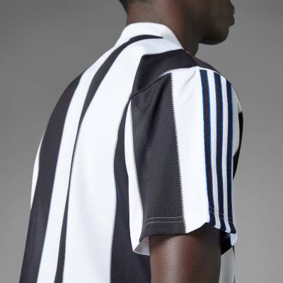 The 2025 version of the English Premier League side’s classic design is largely faithful to the original, featuring the button-up “grandad”-style collar on the striped black-and-white trunk, the embroidered crest and the “Newcastle Brown Ale” beer bottle sponsor graphic in full colour.