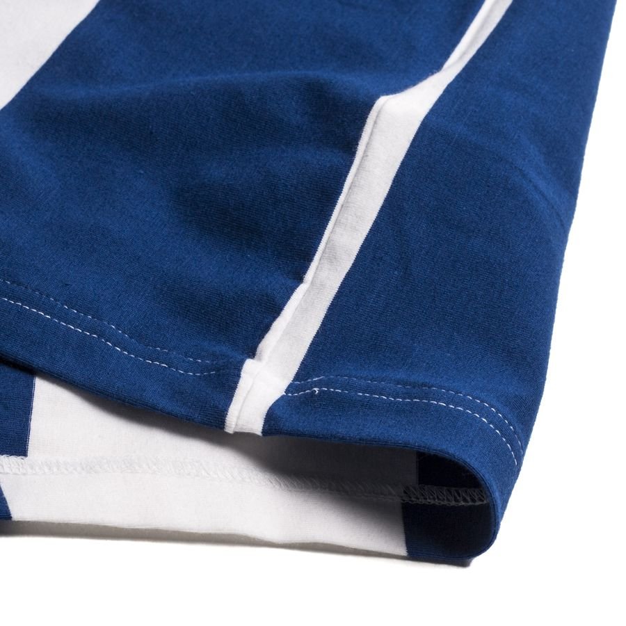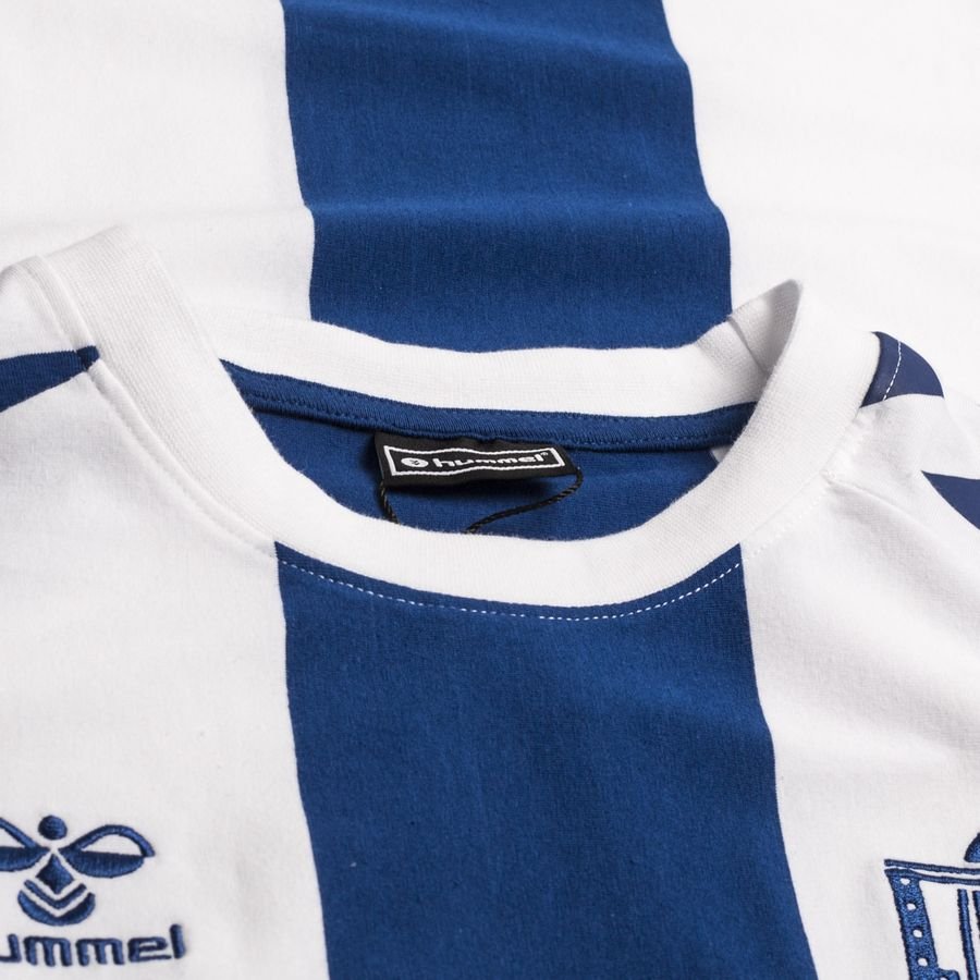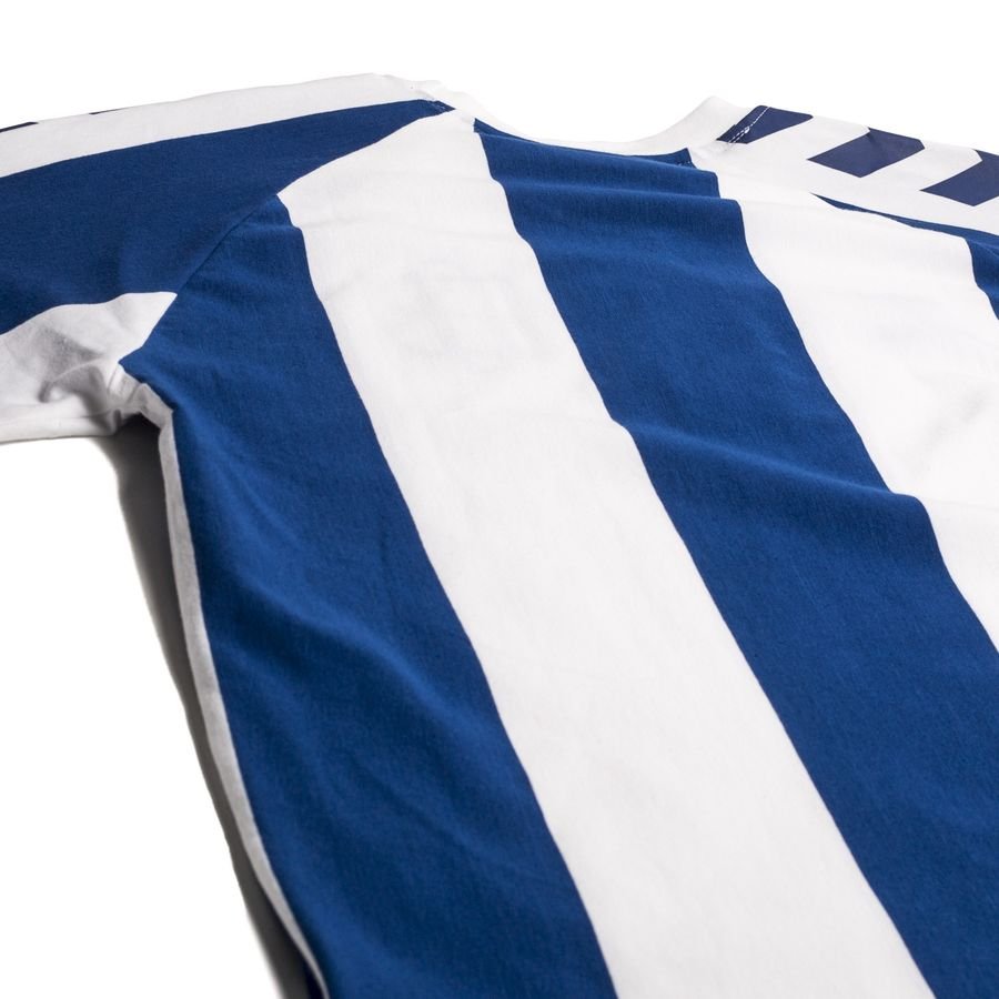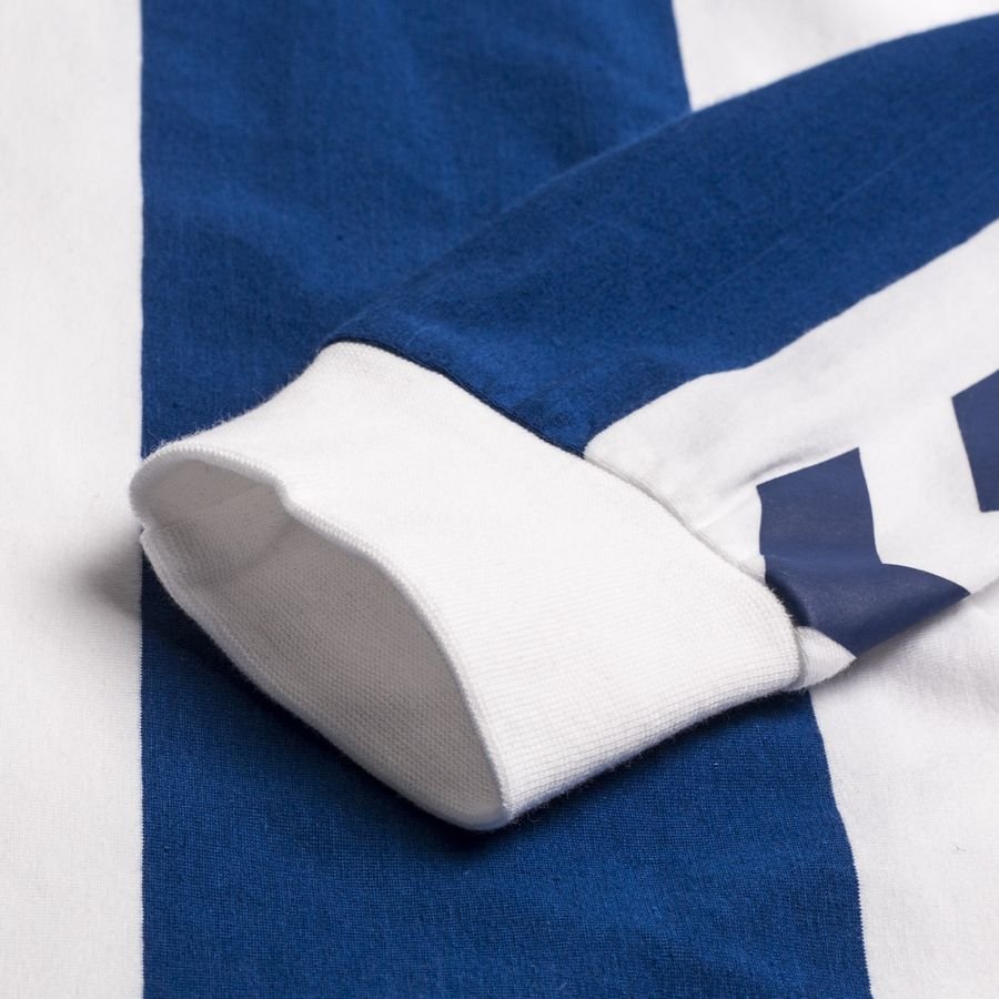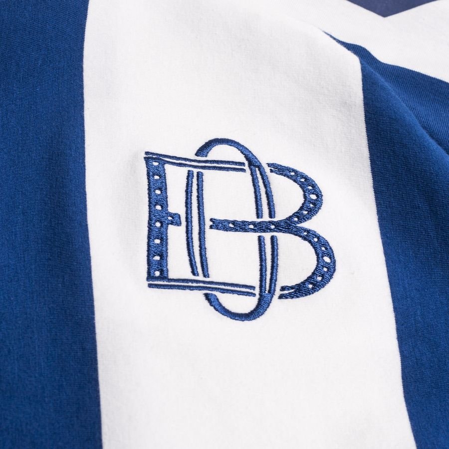 Featuring a simplistic rendering of the famous blue and white stripes, the design also carries the original Odense crest - a stylised monogram - fully embroidered.