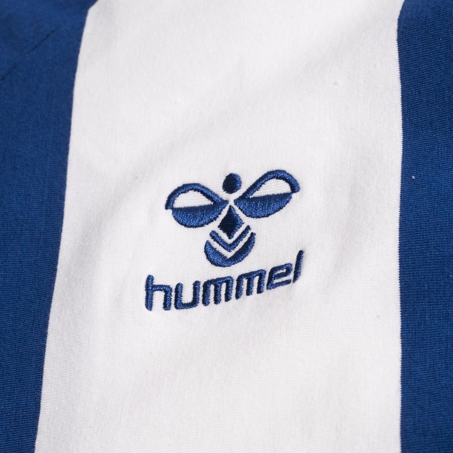 The shirt also boasts significant Hummel branding as, as well as the bumblebee-incorporating chest logo, the sleeves and shoulders are adorned with oversized chevrons.