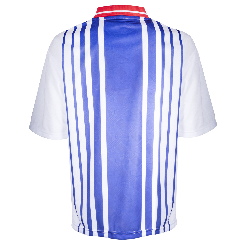 Fully sublimated, this throwback is a reasonably-priced example of a shirt that screams 1990s football in France