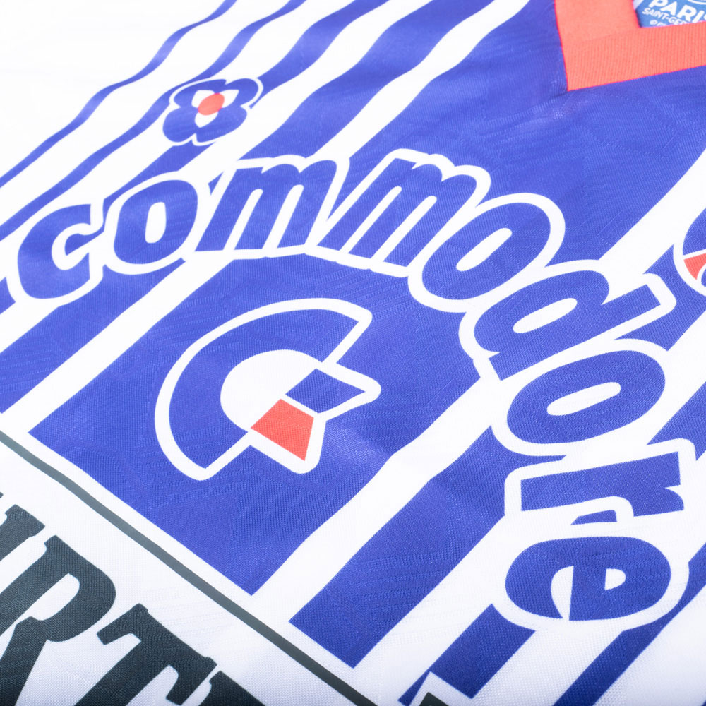 Paris Saint-Germain shirts from the 1990s and 2000s have become particularly sought after since the French Ligue 1 champions were rendered so moneyed, and this 1993 Away is no exception.