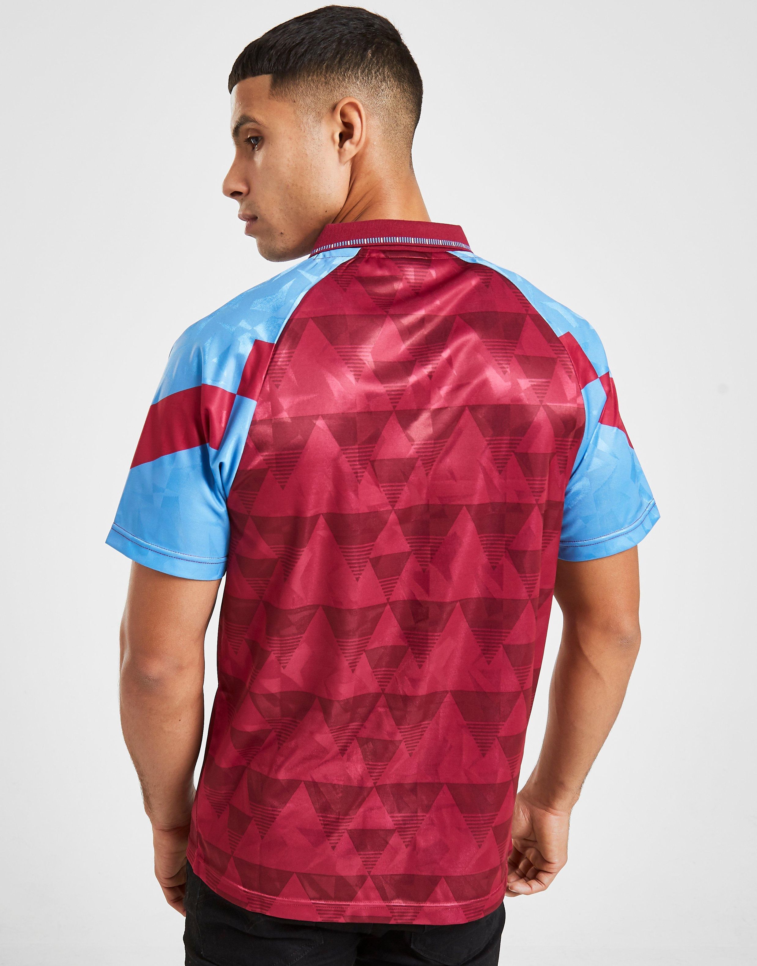 In a claret and blue colourway with graphic detailing, this Aston Villa FC 1990 Home Retro Shirt is made from a smooth poly fabric with a two button fastening and classic spread collar for a classic fit.